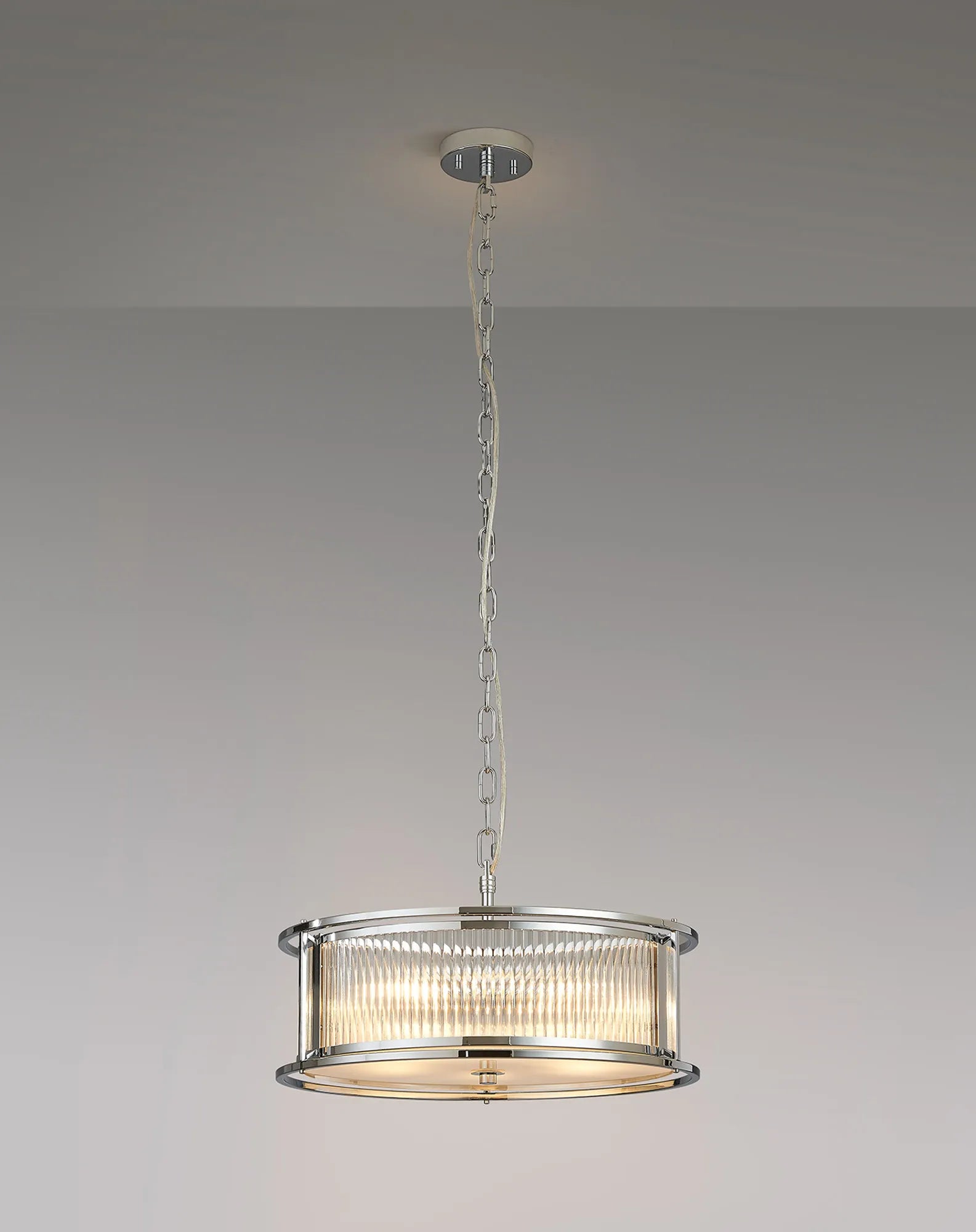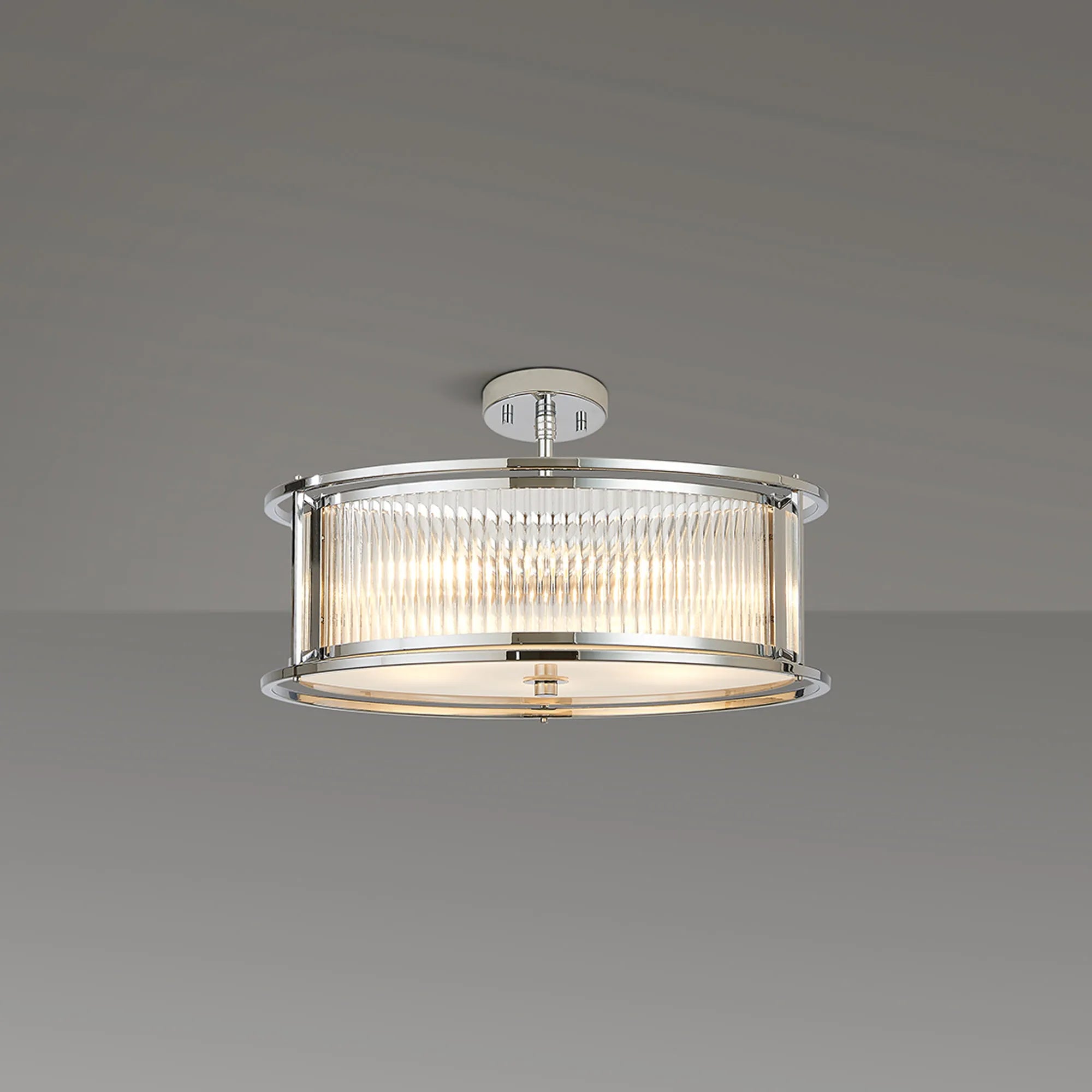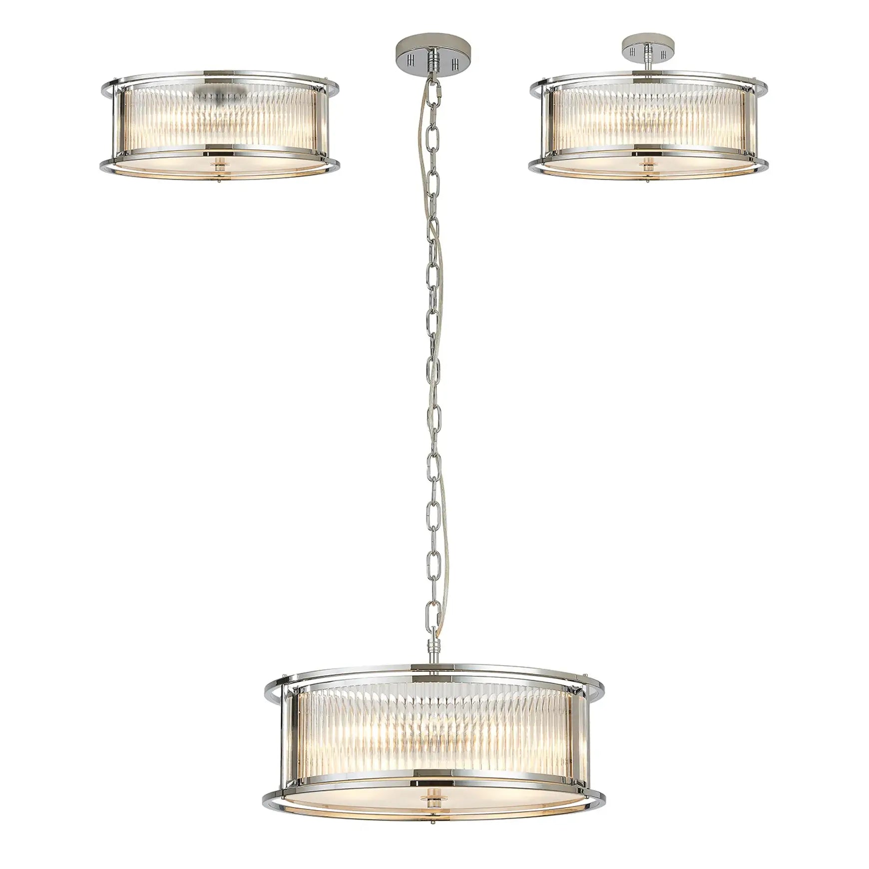 Luxe presents a captivating collection of lantern-style lighting, featuring elegant round and generously sized oval pendants-each effortlessly convertible to semi-flush or flush mount. Available in four exquisite finishes, you can easily find the perfect hue to complement your décor. The ribbed glass panels add a distinctive texture and subtle visual intrigue, enhancing the character of every fixture. Whether you're seeking a modern vibe or a timeless classic look, the Luxe collection offers versatile, stylish lighting options designed to elevate any interior. Complete the look with complementing wall, table or floor lamp.