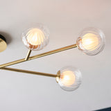 6 Light Satin Brass Semi Flush with Clear Ribbed/Frosted Glass (071196689)