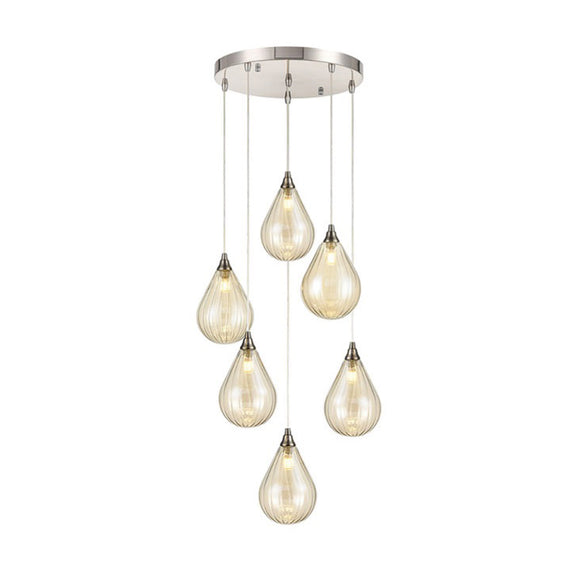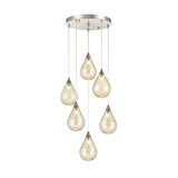 6 Light Cluster Satin Nickel with Amber glass (0194PERC6356)