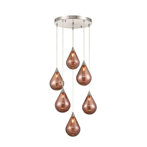 6 Light Cluster Satin Nickel with Copper glass (0194PER24536357)