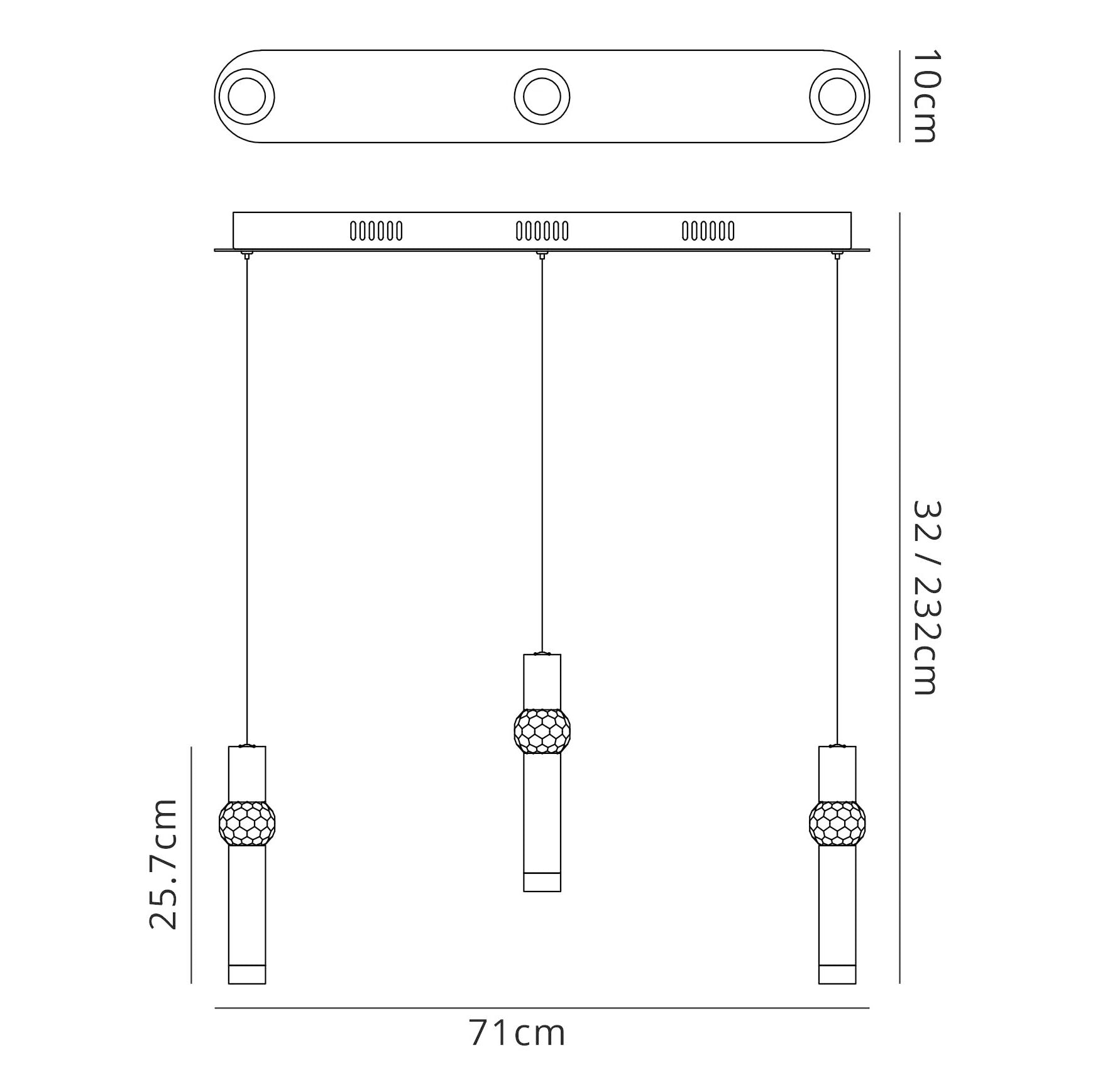 3 Light Linear Pendant, 3 x 5W LED, Polished Chrome - 3yrs Warranty (1230LIA89A)