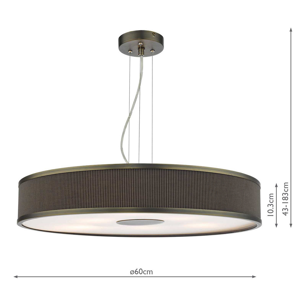 This 6 light pendant in mushroom (warm grey) and Antique brass with its slender profile provides a contemporary silhouette; tightly pleated cotton fabric add texture adds interest to this minimal form. This is a versatile range in two sizes and colourways.