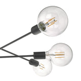 The look of this pendant can be changed by using different lamps such as oversized globes. The black cloth-covered cable can be adjusted on installation.