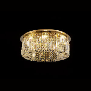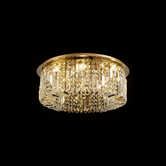65cm Round Flush Chandelier, 8 Light E14, Gold/Crystal (1230HAL71B)