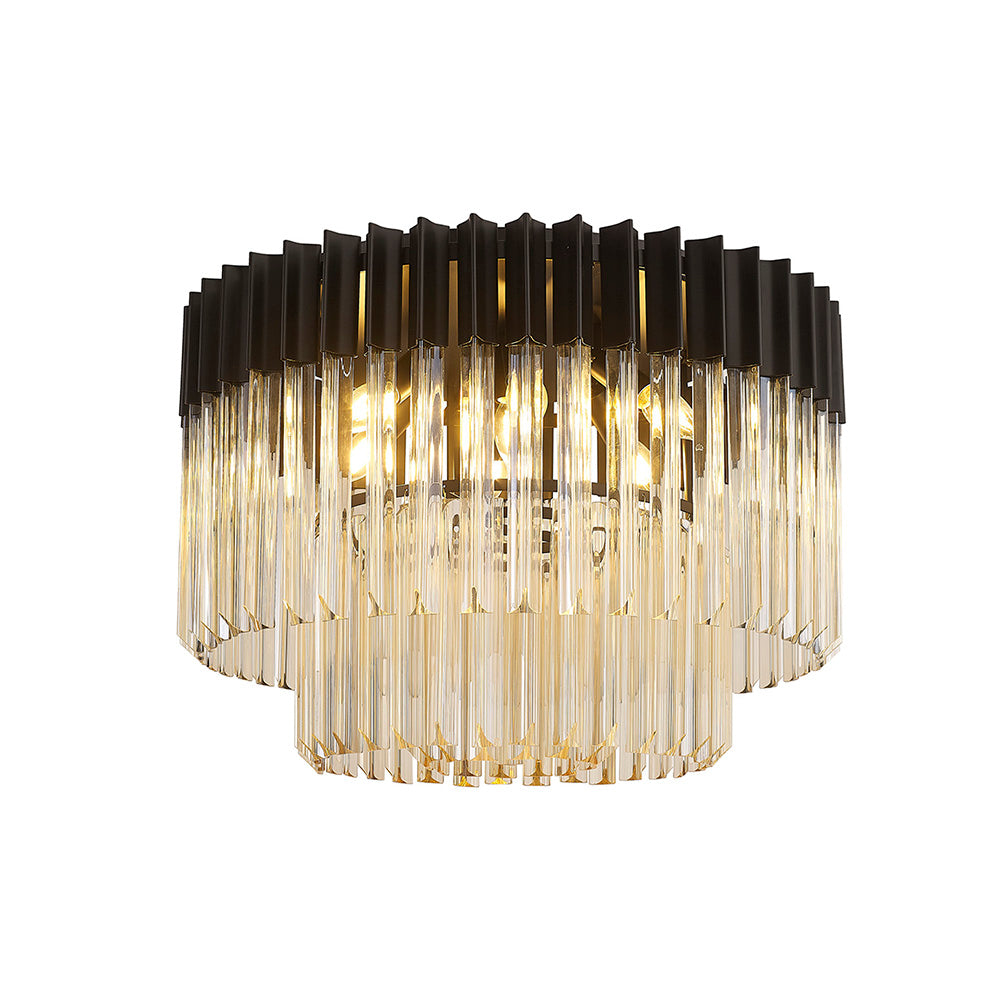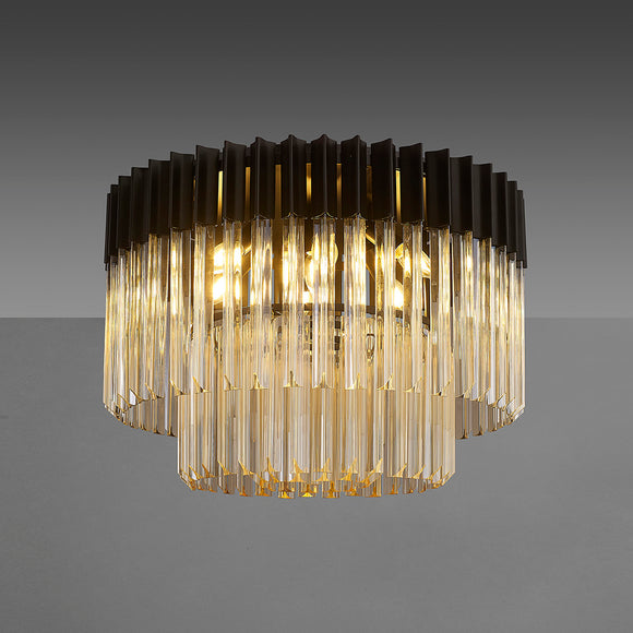 7 Light Flush Ceiling Light in Matt Black finish with Cognac Sculpted Glass (1230GEN57D)