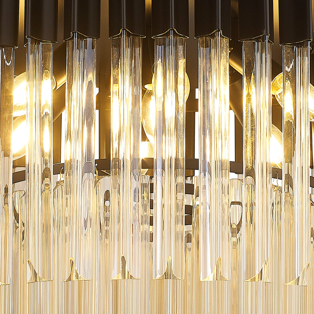 The popularity of this collections initial release has been so overwhelming that the collection has now been extensively expanded to meet a wider range of specification needs. This contemporary design which originally combined a traditional brass finish with clear sculptured glass pieces, now offers a polished nickel or matt black finish with either clear, cognac or smoked glass. The long angular shape of the glass which are in a tiered form, can now be found on larger more dramatic designs including a five tier and rectangular pendant to name only a few. This range has a traditional regal effect composed with modern materials to create a range suitable for either a modern or more traditional room setting. The unique pyramid forms protruding from the frame provide an intriguing overall shape across this comprehensive collection.