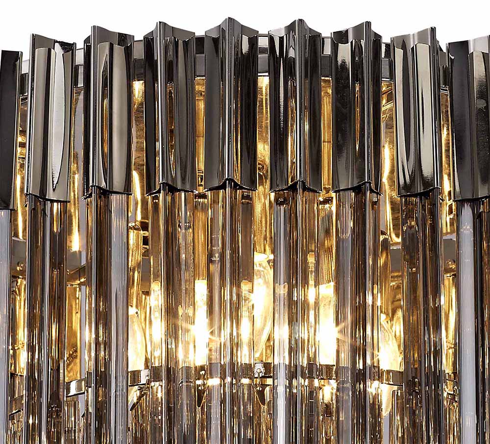The popularity of this collections initial release has been so overwhelming that the collection has now been extensively expanded to meet a wider range of specification needs. This contemporary design which originally combined a traditional brass finish with clear sculptured glass pieces, now offers a polished nickel or matt black finish with either clear, cognac or smoked glass. The long angular shape of the glass which are in a tiered form, can now be found on larger more dramatic designs including a five tier and rectangular pendant to name only a few. This range has a traditional regal effect composed with modern materials to create a range suitable for either a modern or more traditional room setting. The unique pyramid forms protruding from the frame provide an intriguing overall shape across this comprehensive collection.