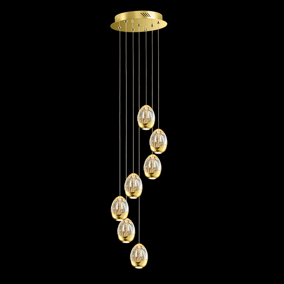 7 Light LED Adjustable Pendant in Gold and Clear Glass (1476TERMD1300)