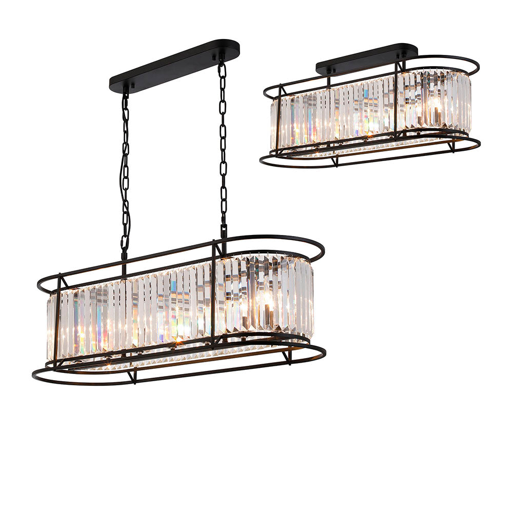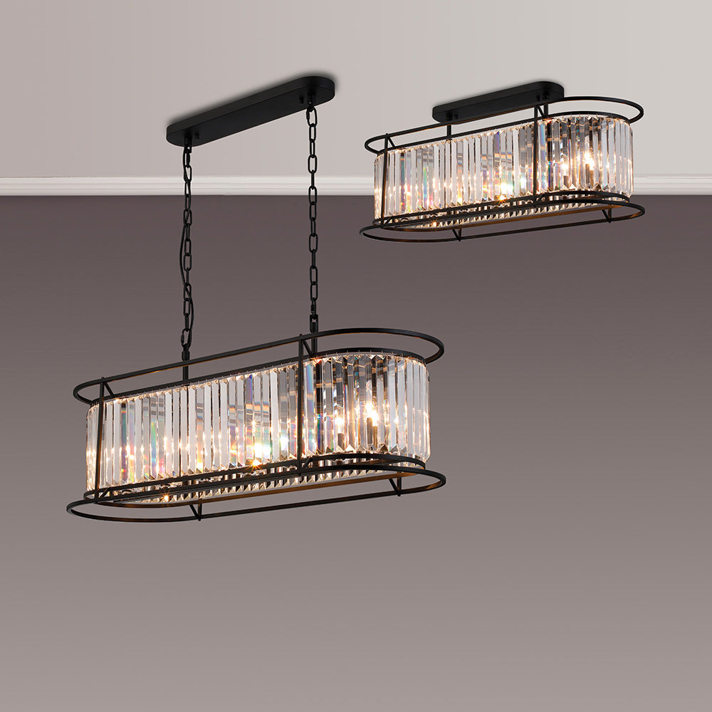This collection offers a wide variety of pendant lights including multiple sized round options and an oval linear light. The comprehensive selection also includes flush ceiling lights, a wall and table lamp. The high quality, long rectangular, clear crystals are hung around the E14 and E27 lamp holders which creates a dazzling effect when illuminated but still maintains a stunning visual when the light is not in use. Available in three colour finishes; antique brass, polished nickel and satin black the regality of this extensive range can bring class and elegance to its given setting.