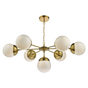 7 Light Pendant Natural Brass & White Opal Glass (0183BOM3435)