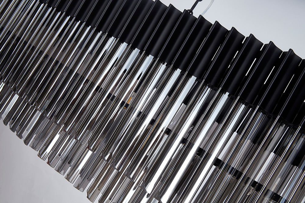 The popularity of this collections initial release has been so overwhelming that the collection has now been extensively expanded to meet a wider range of specification needs. This contemporary design which originally combined a traditional brass finish with clear sculptured glass pieces, now offers a polished nickel or matt black finish with either clear, cognac or smoked glass. The long angular shape of the glass which are in a tiered form, can now be found on larger more dramatic designs including a five tier and rectangular pendant to name only a few. This range has a traditional regal effect composed with modern materials to create a range suitable for either a modern or more traditional room setting. The unique pyramid forms protruding from the frame provide an intriguing overall shape across this comprehensive collection.