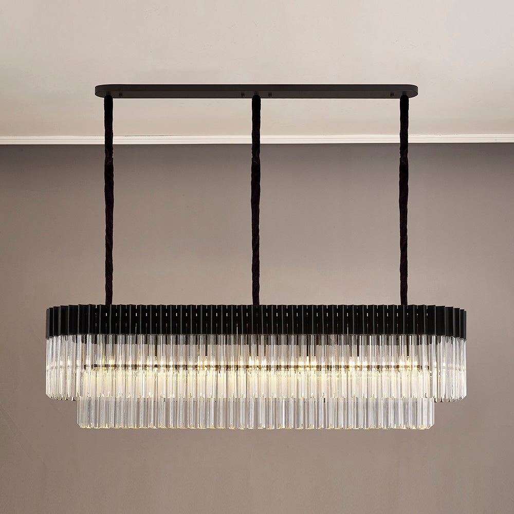 7 Light Rectangle Pendant in Matt Black finish with Clear Sculpted Glass (1230GEN59C)