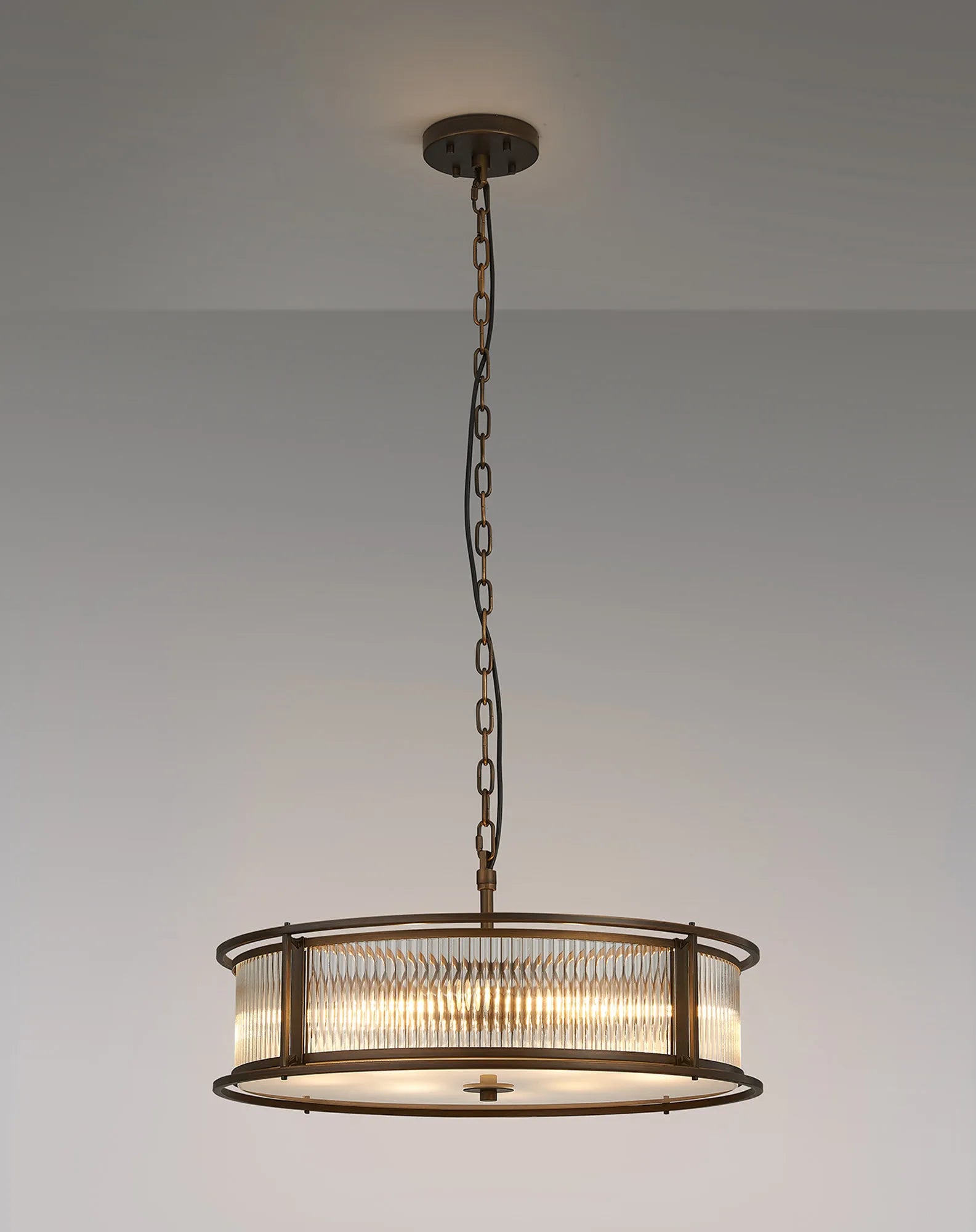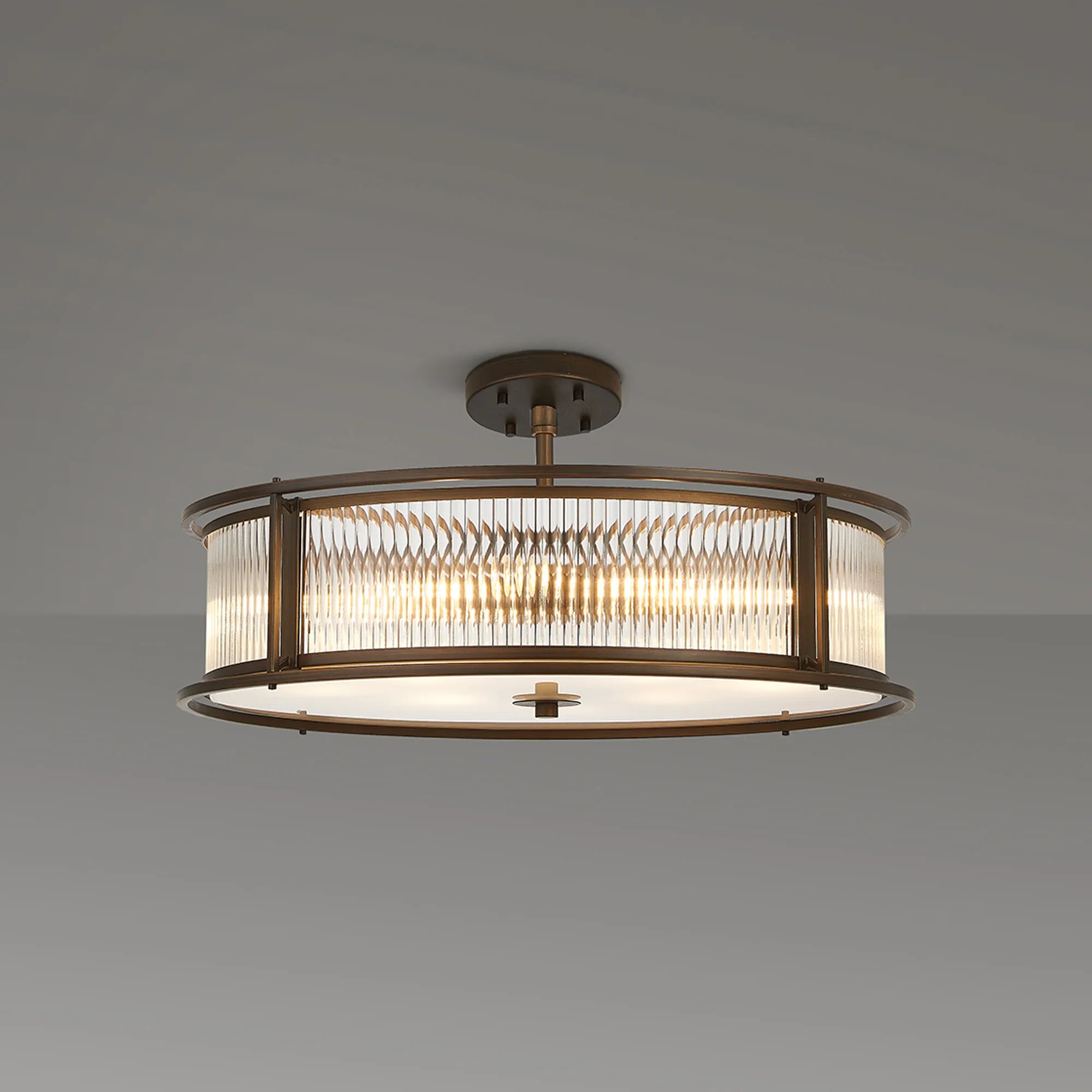 Luxe presents a captivating collection of lantern-style lighting, featuring elegant round and generously sized oval pendants-each effortlessly convertible to semi-flush or flush mount. Available in four exquisite finishes, you can easily find the perfect hue to complement your décor. The ribbed glass panels add a distinctive texture and subtle visual intrigue, enhancing the character of every fixture. Whether you're seeking a modern vibe or a timeless classic look, the Luxe collection offers versatile, stylish lighting options designed to elevate any interior. Complete the look with complementing wall, table or floor lamp.
