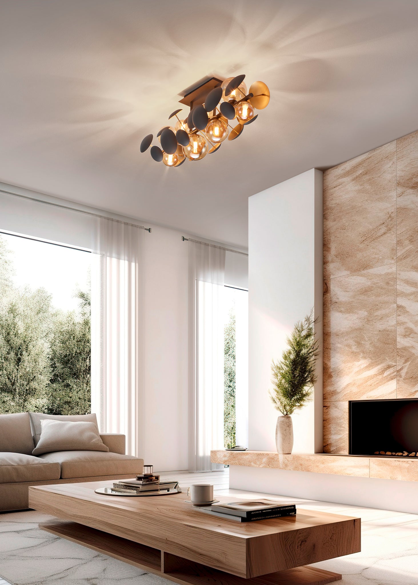 The lights in this range create remarkable accents with a wow effect in your living area. The ceiling light unfolds its extraordinary effect particularly impressively in the bedroom or living room and plays with light and shadow thanks to its unmistakable design. The unique design of the light is emphasised by the material combination of white glass and gold-coloured metal. The use of LED light sources is recommended for energy-saving lighting. These are an ideal alternative to conventional halogen light sources and offer high light quality and energy savings of up to 80%. With LED light sources, you also benefit from a long service life and low heat generation while protecting the environment.