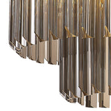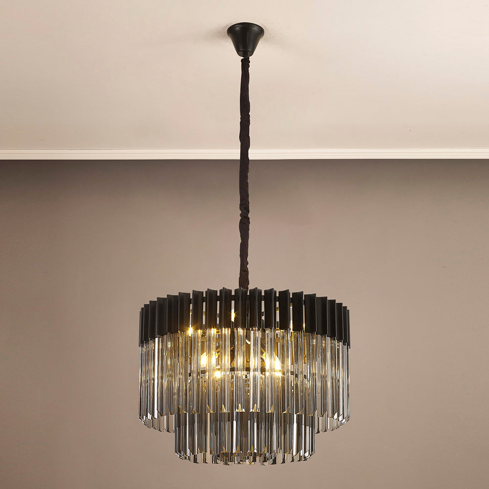The popularity of this collections initial release has been so overwhelming that the collection has now been extensively expanded to meet a wider range of specification needs. This contemporary design which originally combined a traditional brass finish with clear sculptured glass pieces, now offers a polished nickel or matt black finish with either clear, cognac or smoked glass. The long angular shape of the glass which are in a tiered form, can now be found on larger more dramatic designs including a five tier and rectangular pendant to name only a few. This range has a traditional regal effect composed with modern materials to create a range suitable for either a modern or more traditional room setting. The unique pyramid forms protruding from the frame provide an intriguing overall shape across this comprehensive collection.