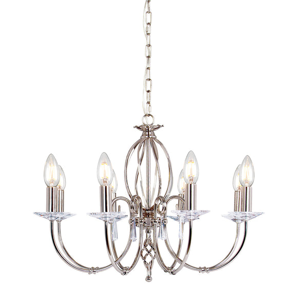8 Light Chandelier – Polished Nickel (0178AEGAG8PN)