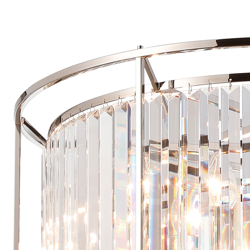 This collection offers a wide variety of pendant lights including multiple sized round options and an oval linear light. The comprehensive selection also includes flush ceiling lights, a wall and table lamp. The high quality, long rectangular, clear crystals are hung around the E14 and E27 lamp holders which creates a dazzling effect when illuminated but still maintains a stunning visual when the light is not in use. Available in three colour finishes; antique brass, polished nickel and satin black the regality of this extensive range can bring class and elegance to its given setting.