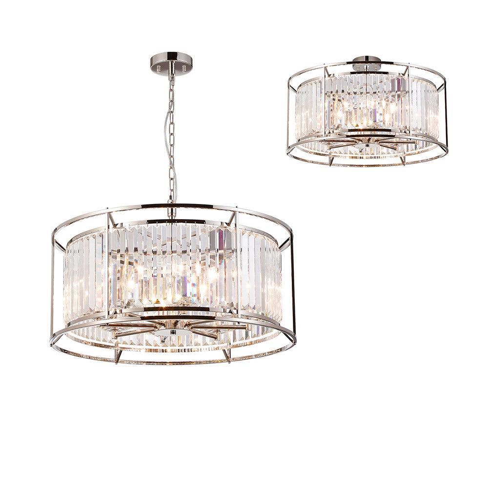 8 Light Dual Pendant in Polished Nickel with Clear Crystals (1230CHA80D)