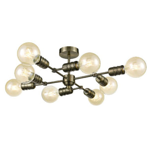 8 Light Industrial Semi-Flush Antique Brass (0194IMP78)