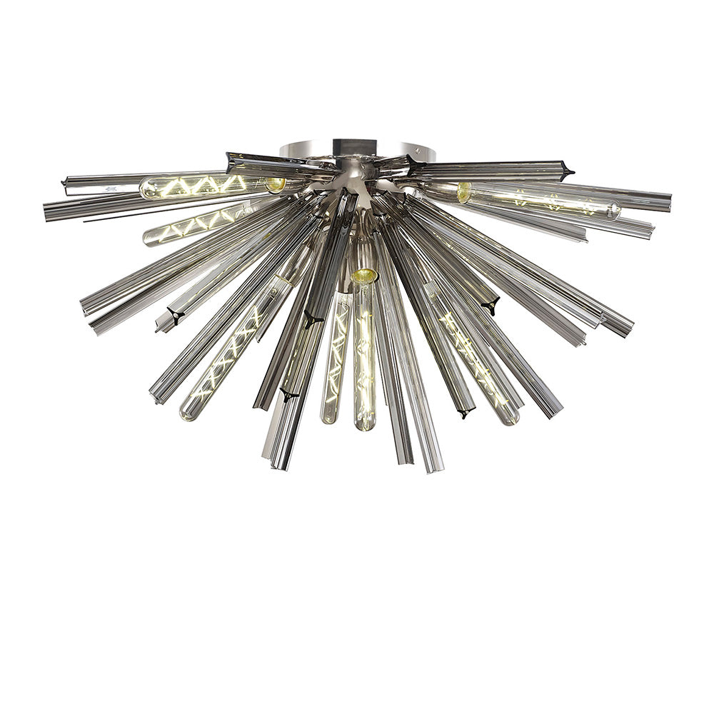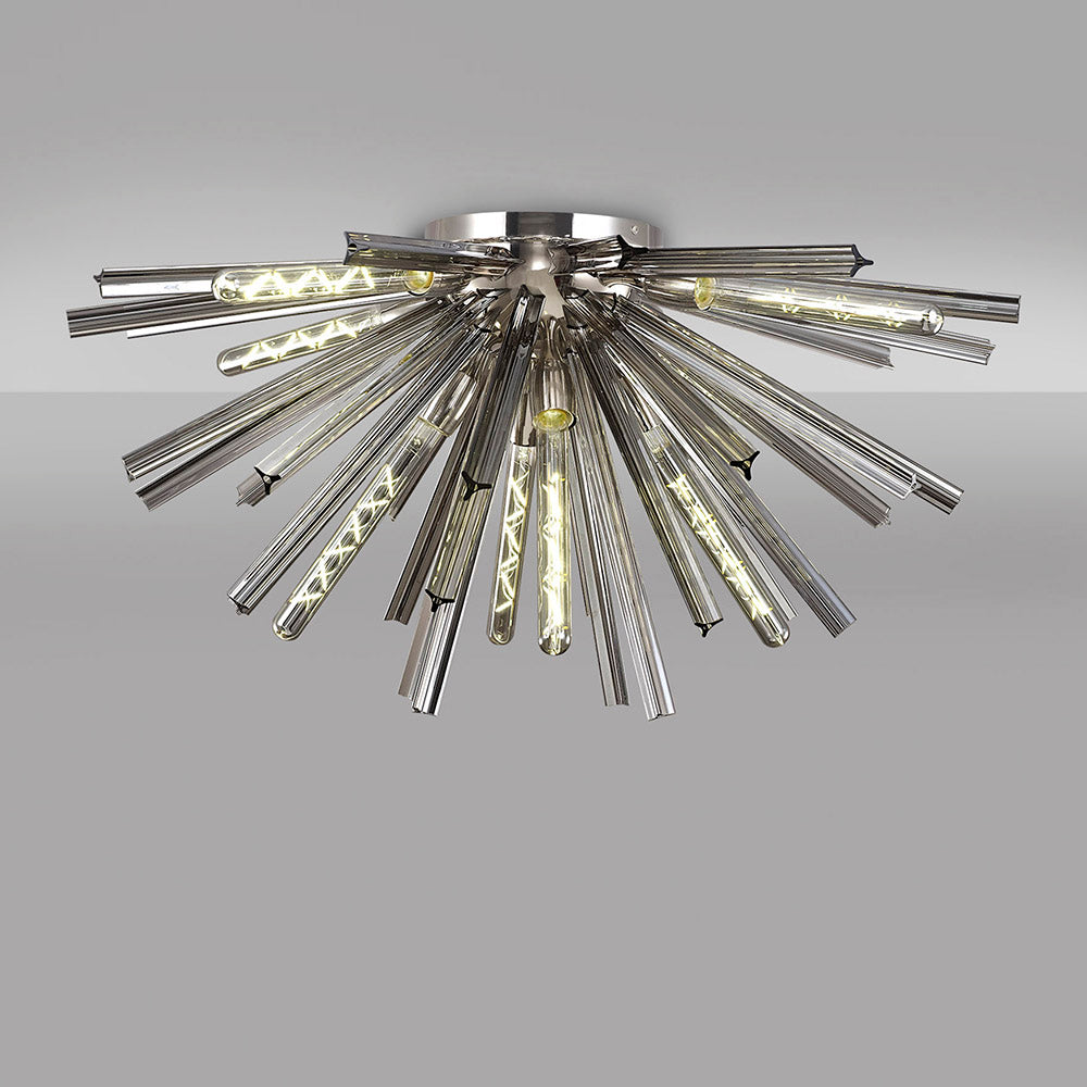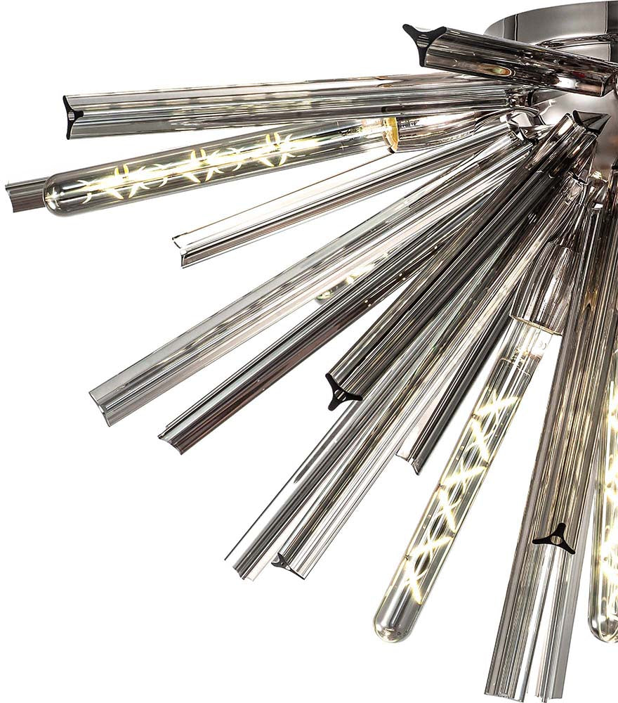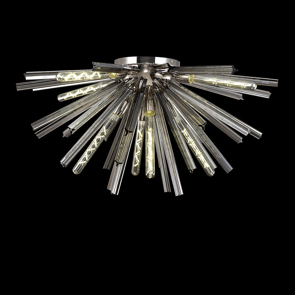 8 Light Semi Flush Light in Polished Nickel with Smoke Glass (1230THU5B)