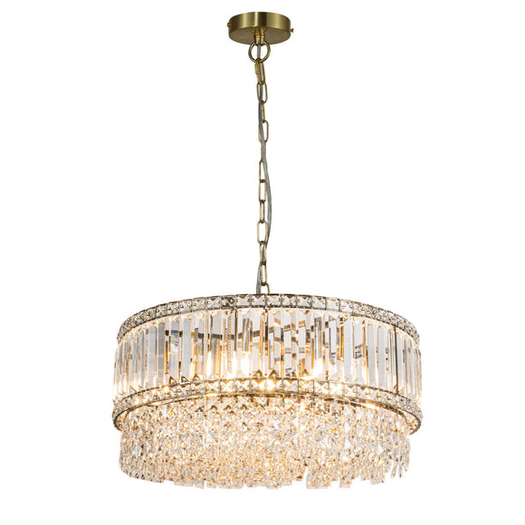 A luxurious pendant showcasing this iconic crystal band, available in 5 sizes and in either Polished Chrome or Antique Brass.