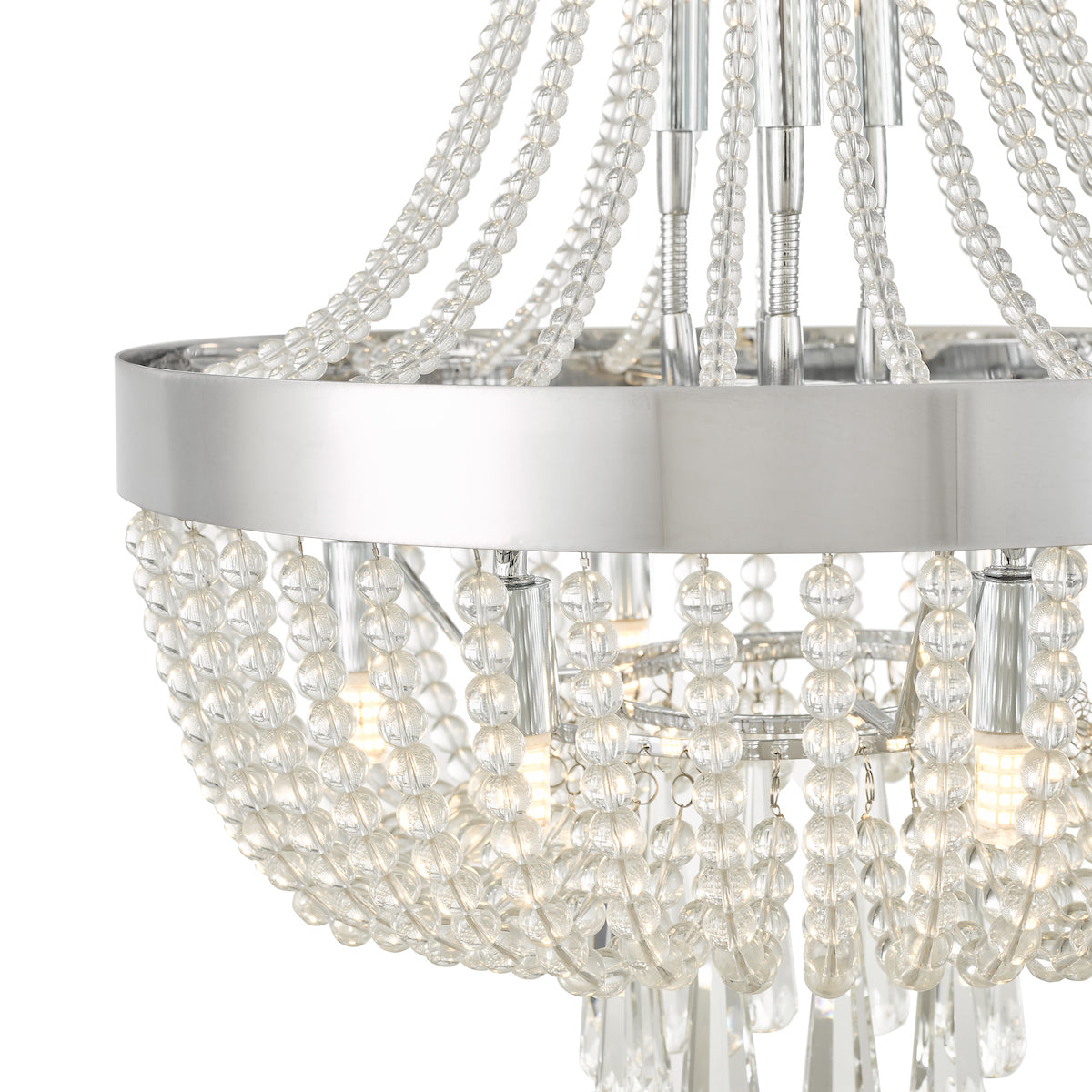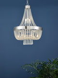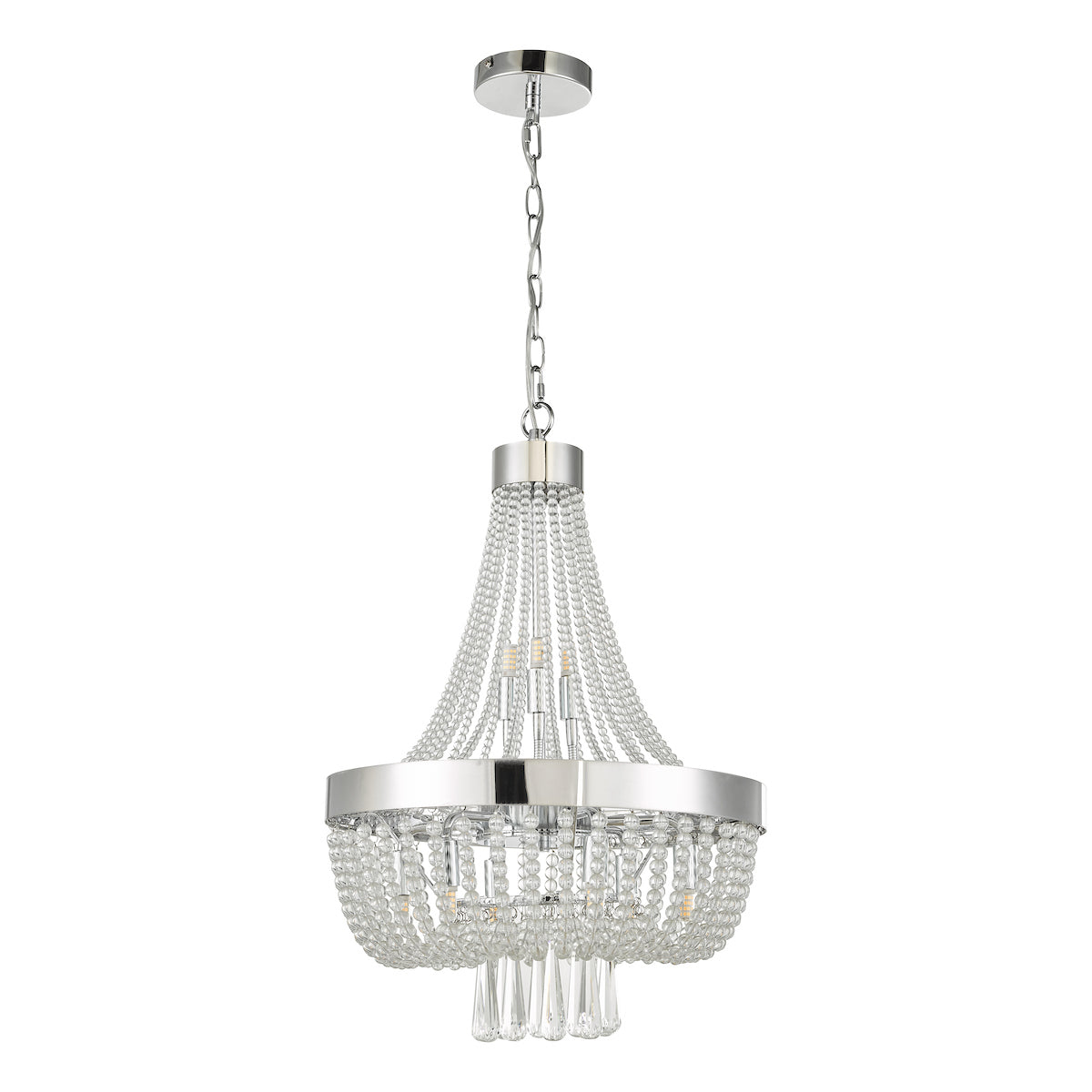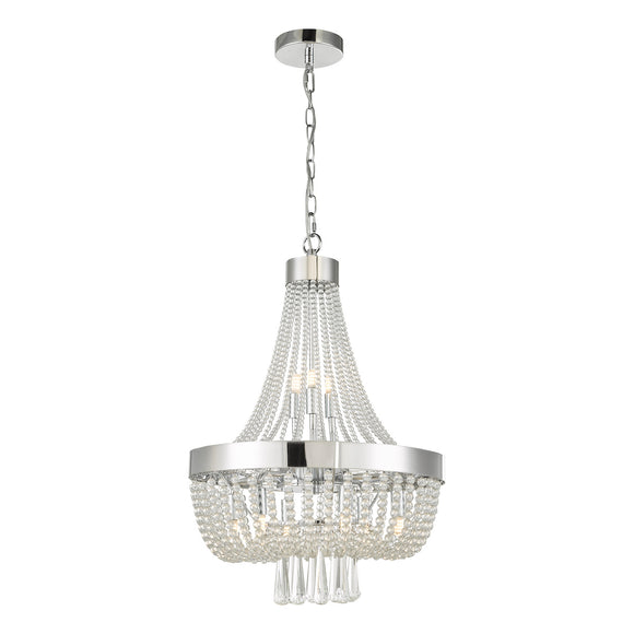 The 9 light crystal chandelier is festooned with crystal glass beads around a lavish arrangement of central glass drops. A beautiful decorative piece perfect for adding glamour to most rooms. The crystal chandelier comes with 1m of hanging chain which can easily be shortened on installation. If you like this look and height is a problem, try our 0183SAI 5 light flush ceiling light which has the same styling but suited to low ceilings.