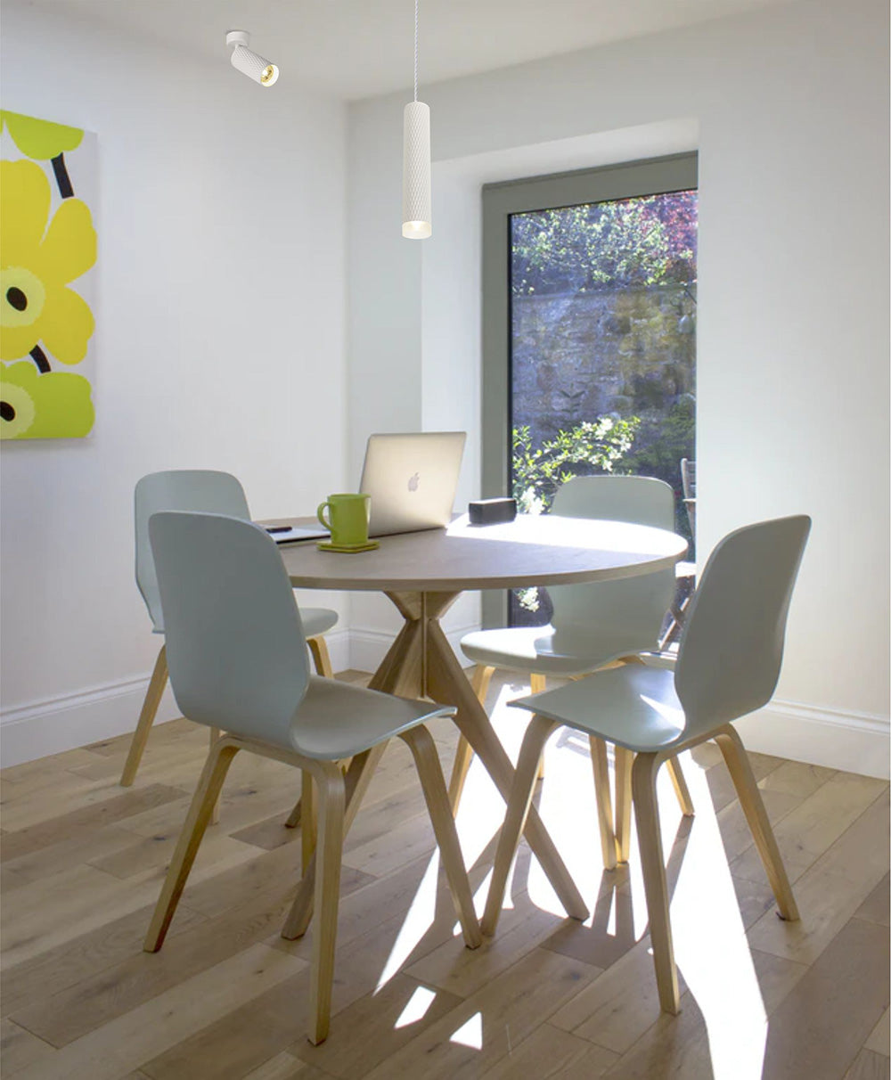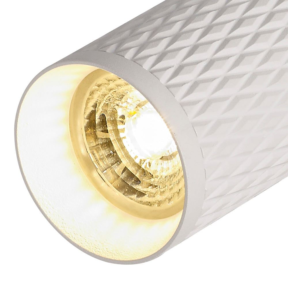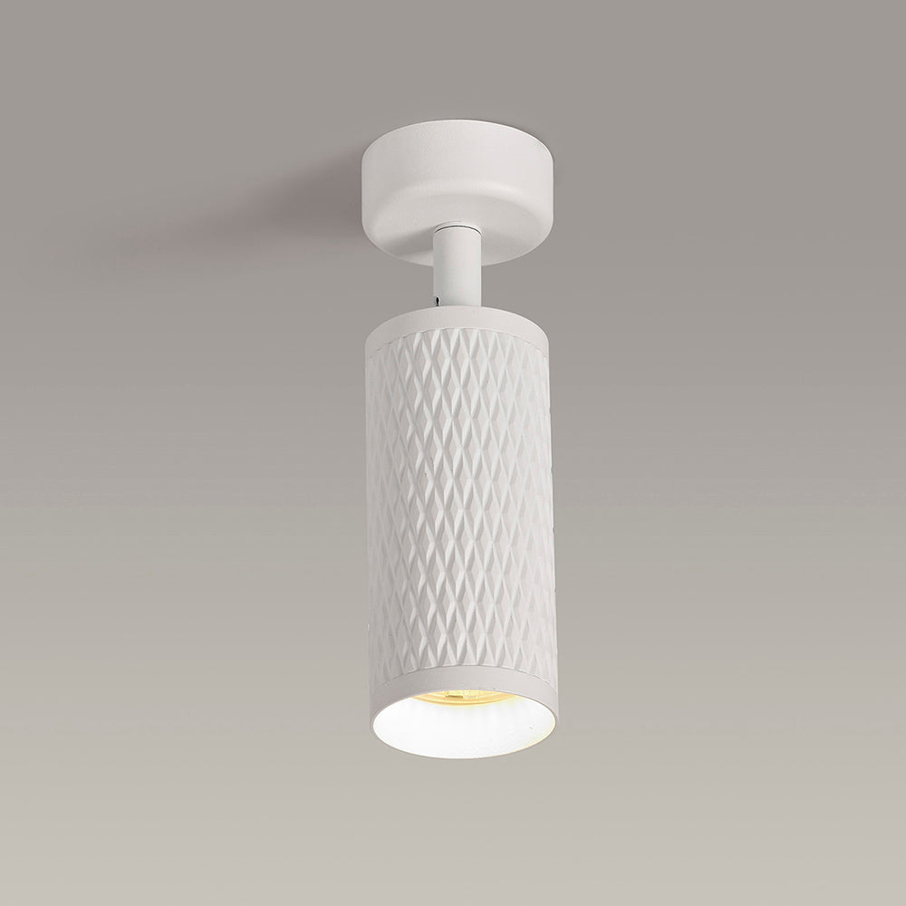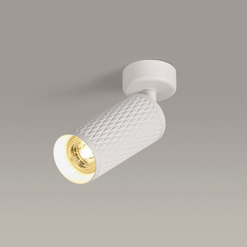 The cylindrical format of this range is decorated with a diamond imprint producing a mesh like effect. These light fittings are available as a surface mounted ceiling fitting, wall lamps, track spotlight or surface mounted adjustable spotlight. The wide variety of colour finishes available, complementing face ring accessories and the pendant kit offers a greater number of lighting solutions for all kinds of room settings and applications.