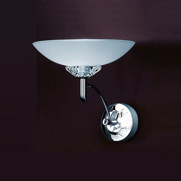 In chrome finish single with faceted glass sconce and satin opal glass bowl. Suitable for dimming if used with mains voltage halogen lamps. LED G9 lamps may be used but suitability for dimming will depend on the lamp and switch used.