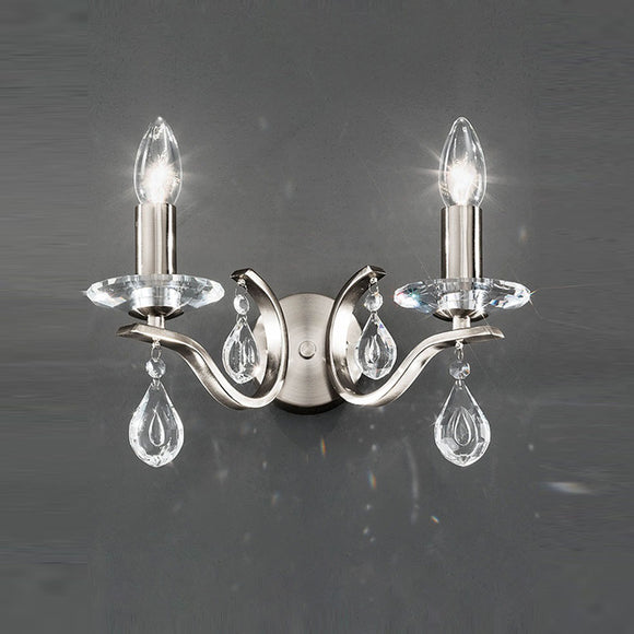 2 light wall light in Satin Nickel with crystal glass droplets (0194WILFL22982)