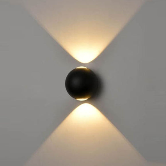In matt black cast aluminium. Designed to be inconspicuous until lit when the position of the LED light points casts beautiful patterns on the wall as well as offering useful levels of illumination.