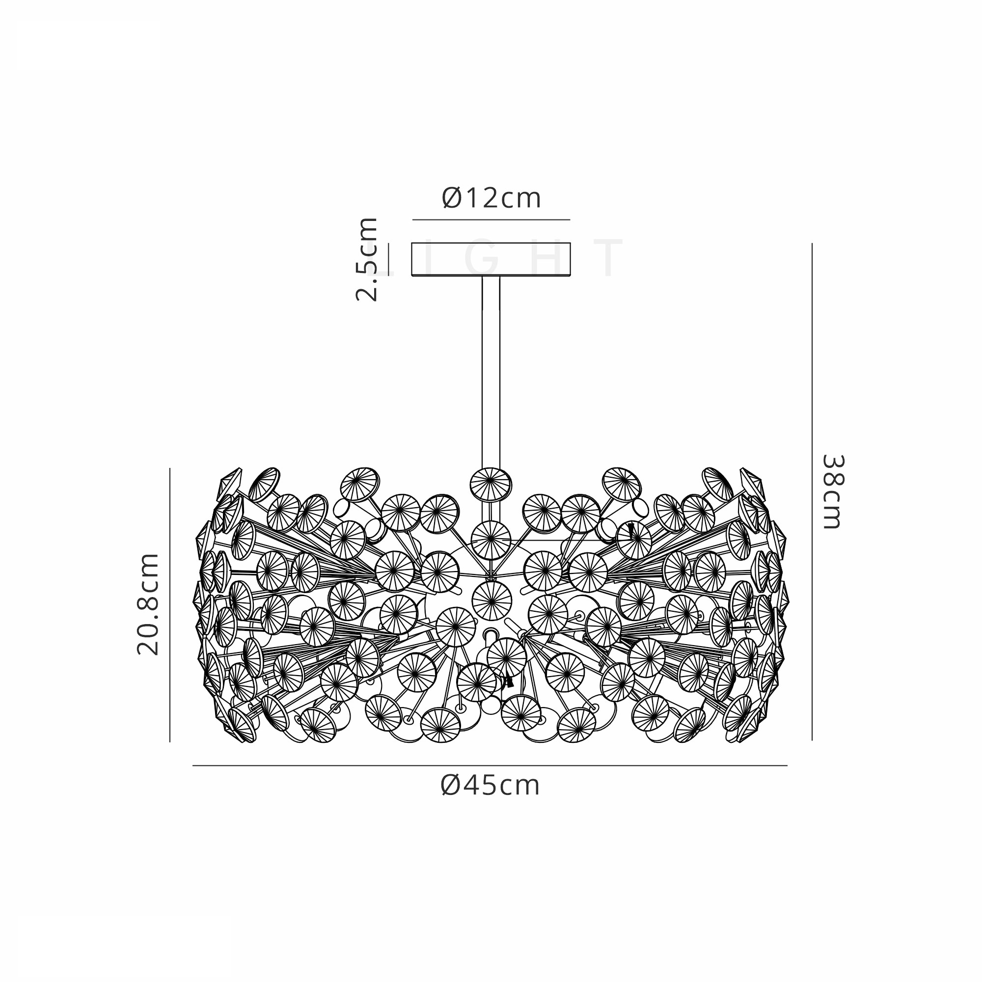 This beautiful comprehensive collection available in either a polished chrome or French gold colour finish, uses slim stems angled erratically to form an enchanting cluster of clear crystal disks. The lines of the central framework of round, tiered and oblong pendants, act as a base from which the crystals can sit around the G9 lamp holders ensuring the light emitted from the chosen lamp refracts through each facette throwing sublime spectrums. An extensive range of products are available within the Fiesta range, making it suitable for an array of applications.