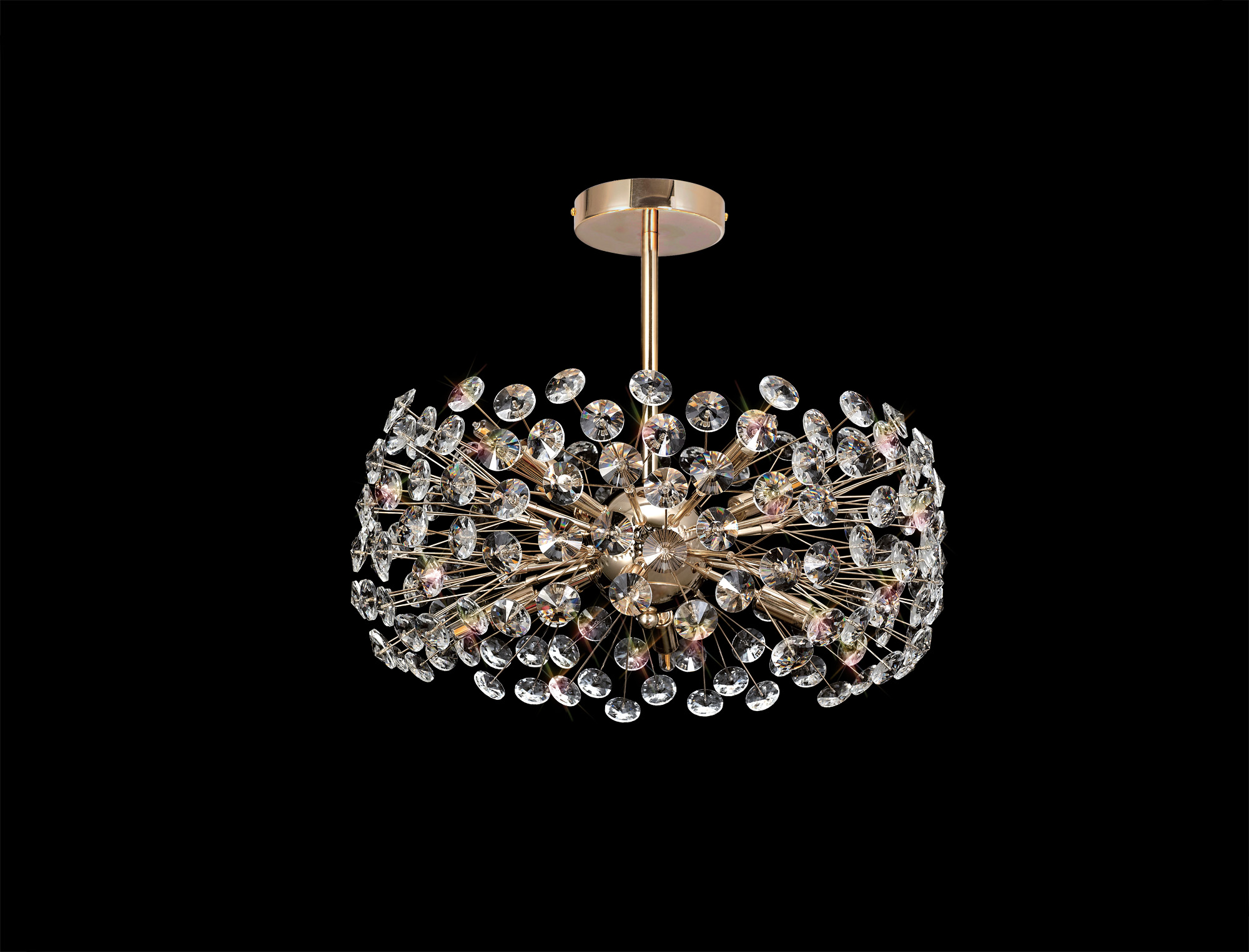 Fiesta 8 Light Semi Flush Pendant Gold/Crystal - 45 cm dimater (1230FIE106A)