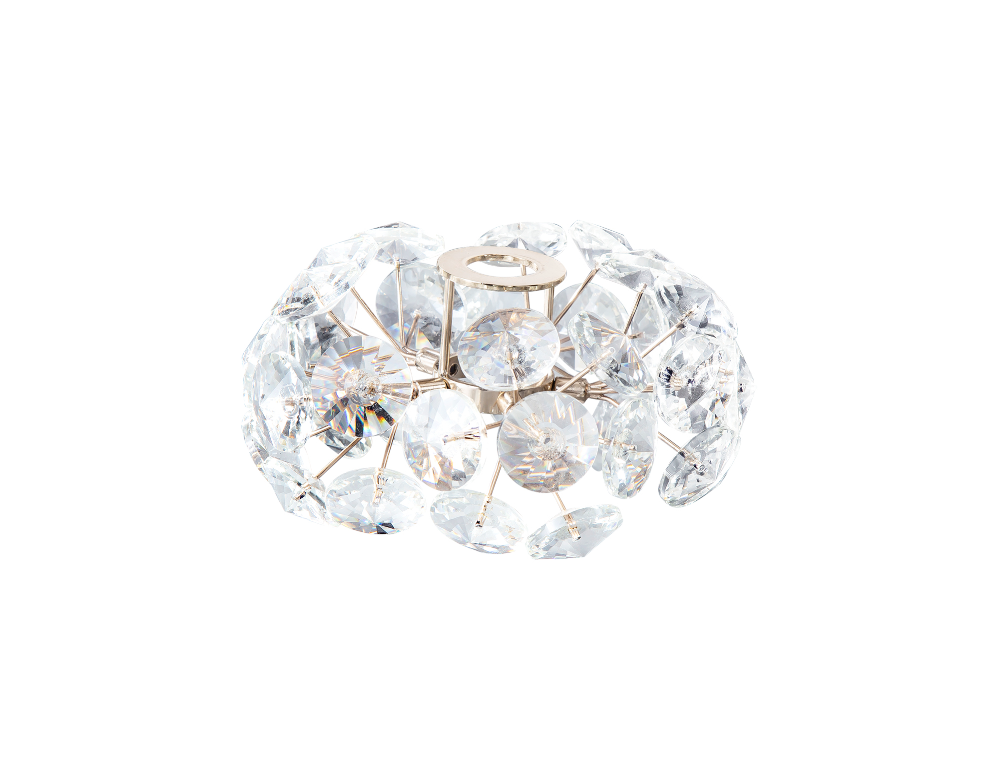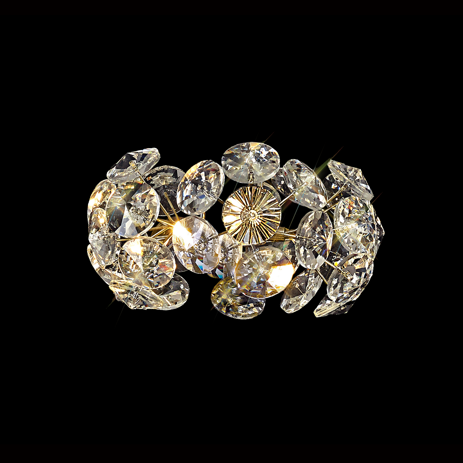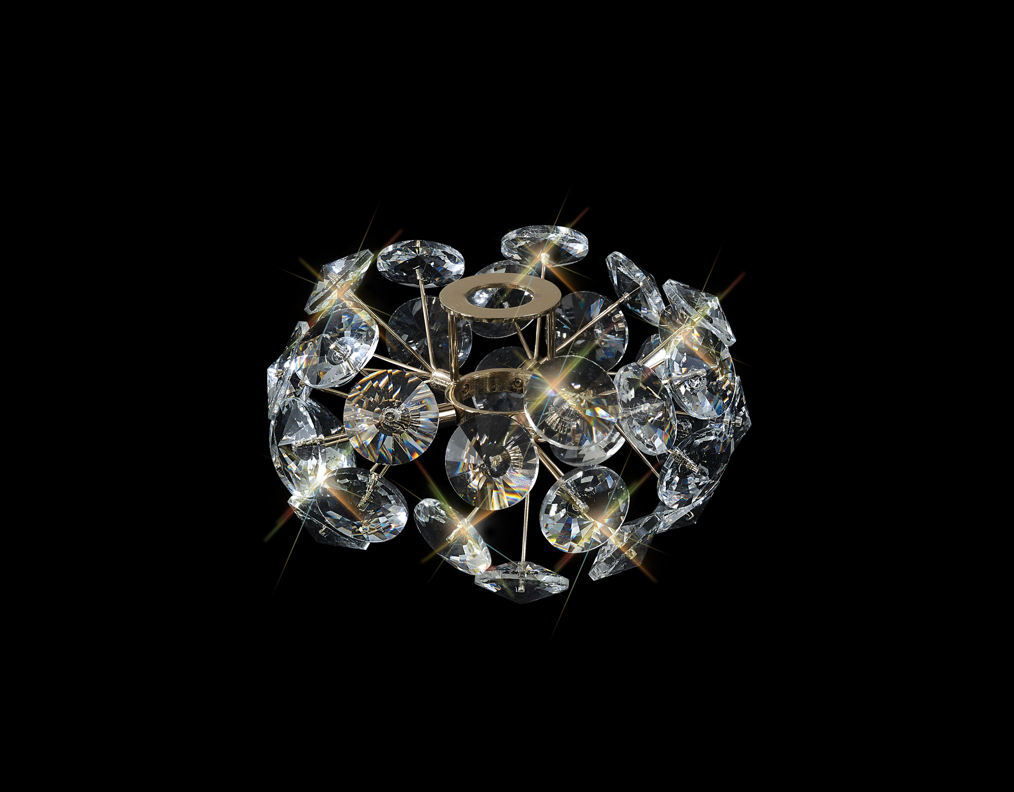 This beautiful comprehensive collection available in either a polished chrome or French gold colour finish, uses slim stems angled erratically to form an enchanting cluster of clear crystal disks. The lines of the central framework of round, tiered and oblong pendants, act as a base from which the crystals can sit around the G9 lamp holders ensuring the light emitted from the chosen lamp refracts through each facette throwing sublime spectrums. An extensive range of products are available within the Fiesta range, making it suitable for an array of applications.
