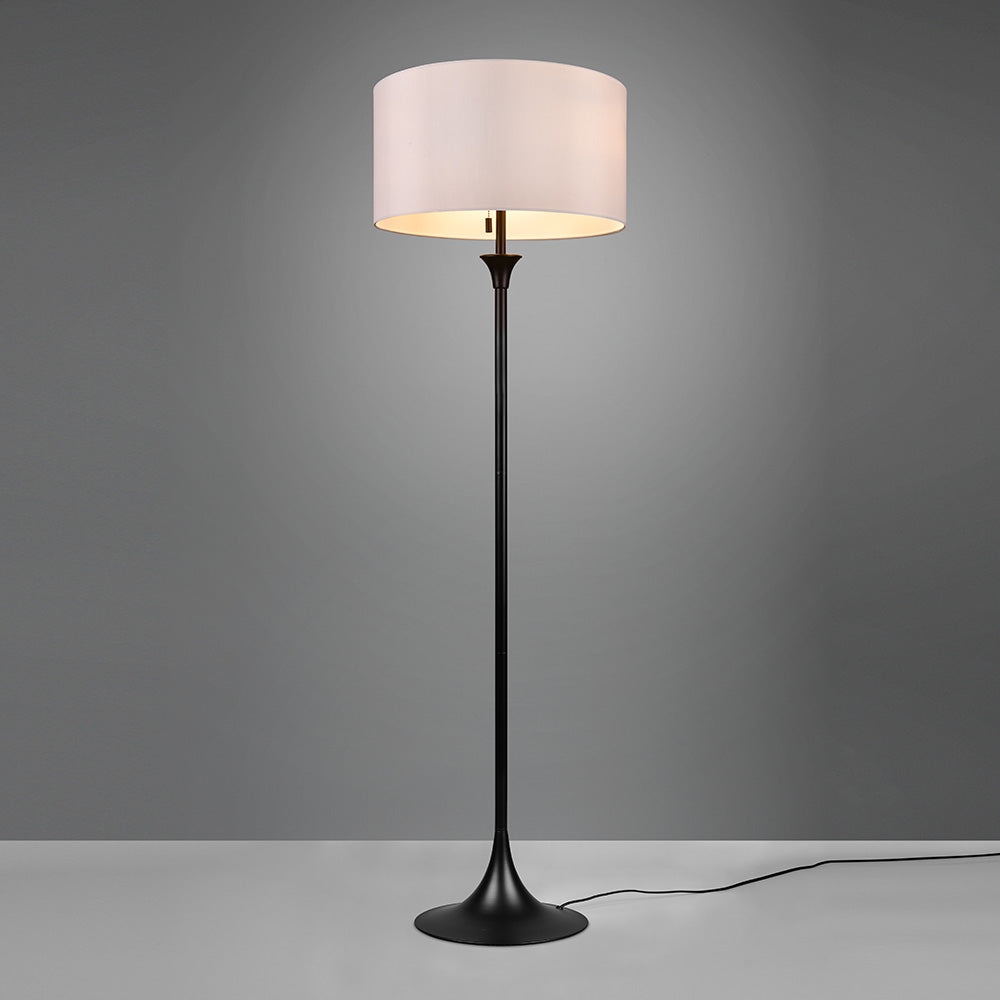 Floor Lamp in Matt Black Metal with White Fabric Shade (1542SAB415700)