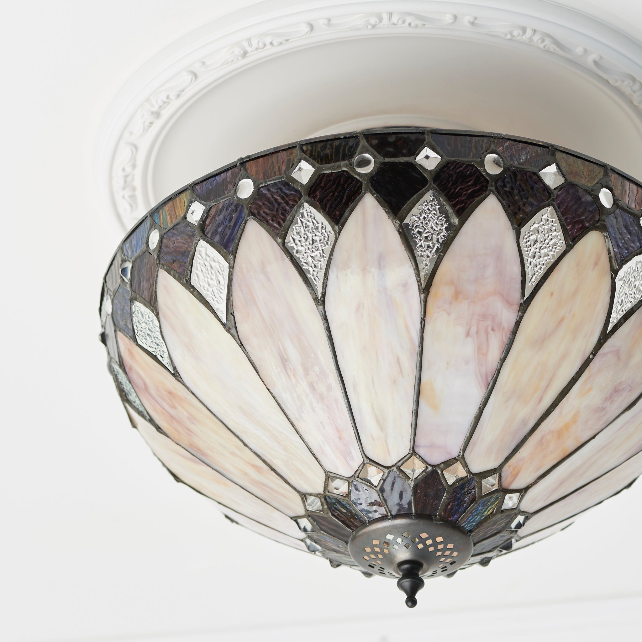 Inspired by the Art Deco period, the Tiffany 3 light semi flush fitting features an unusual shape, bevelled and textured glass combined with rich cream art glass creating a striking finish. Compatible with LED lamps.