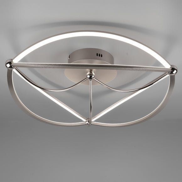The luminaires in this series captivate with their elegant design and functionality. Whether in the living room, hallway or bedroom, the decorative ceiling light ensures optimum lighting conditions. Via the integrated SWITCH dimmer, three different brightness levels can be selected by means of a conventional light switch. By adjusting the light intensity from 100% to 50% and 25%, the lamp can thus be adapted to different requirements. The matt nickel colour design ensures easy integration into existing furnishing concepts. The lamp also features a modern LED technology, which is characterised by excellent lighting quality and energy efficiency. Compared to conventional halogen lamps, up to 80% of energy costs can be saved. In addition, LED light sources have a long service life, produce less heat and are environmentally friendly.