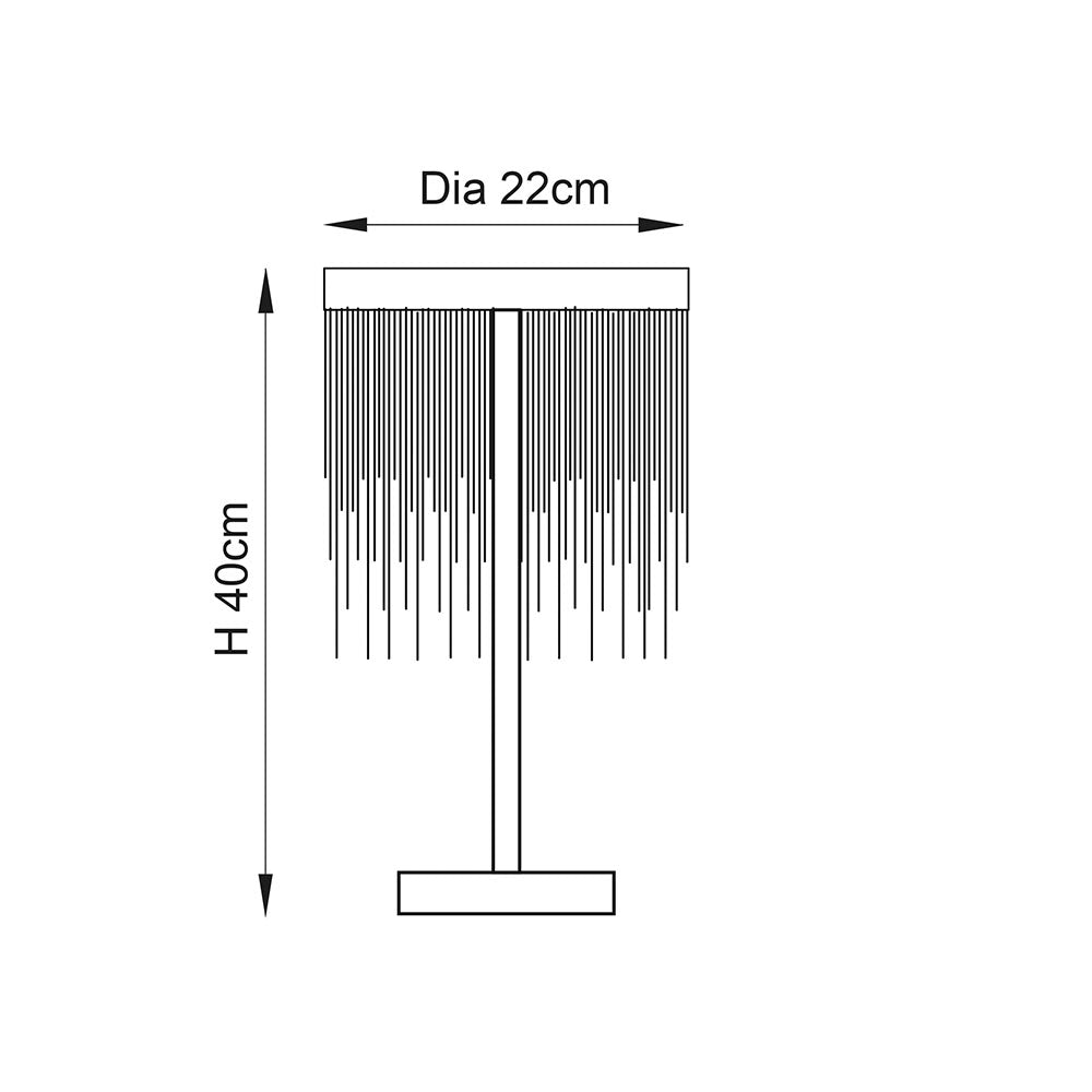 Contemporary LED table lamp with a ring of LED lights diffused by a waterfall of hundreds of delicate chains. Perfect for modern interiors and plated in a polished chrome finish.