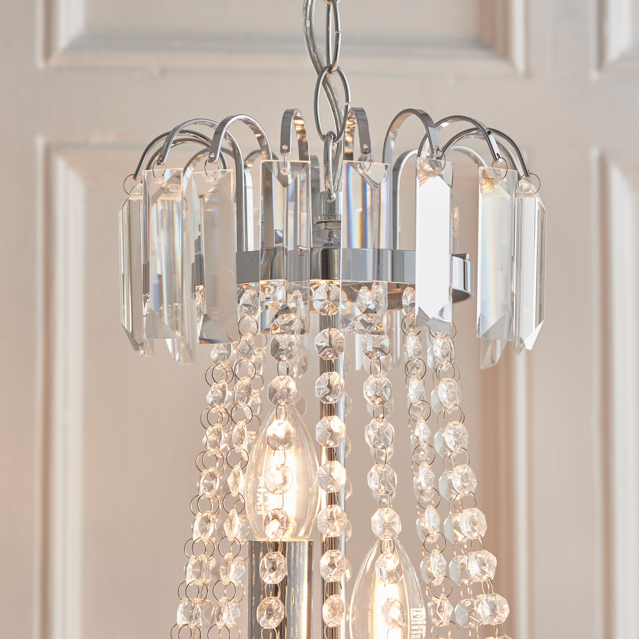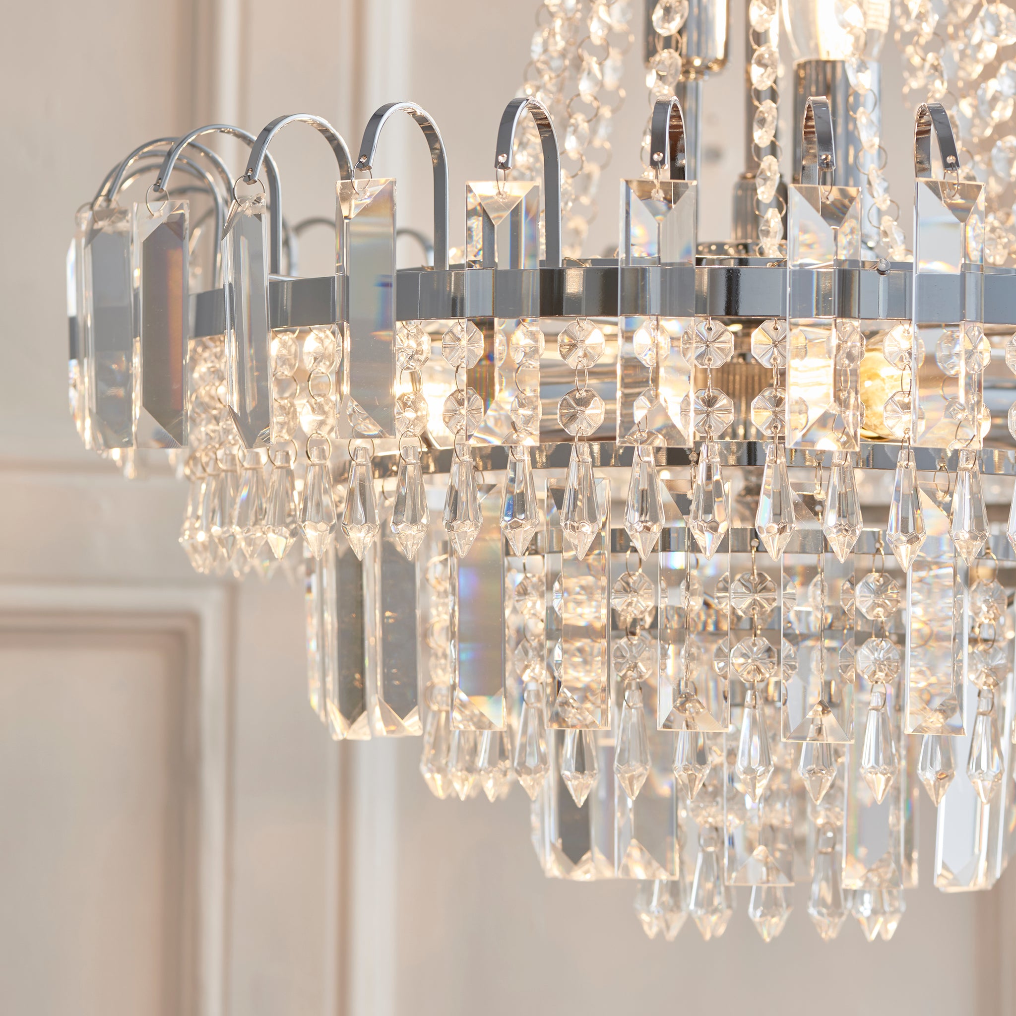 A luxuriant mix of faceted clear glass and polished chrome creates a stunning centre piece to complement any room.