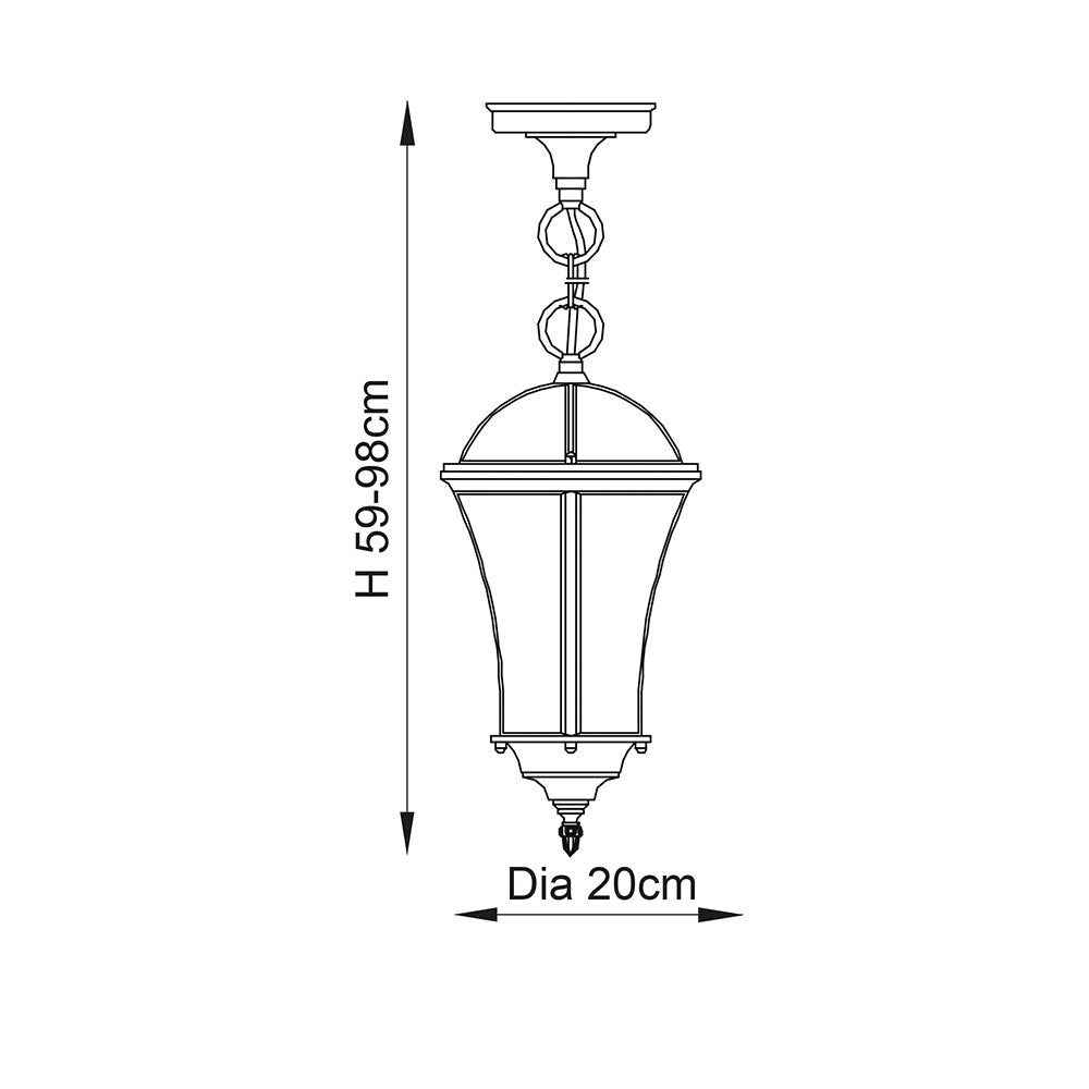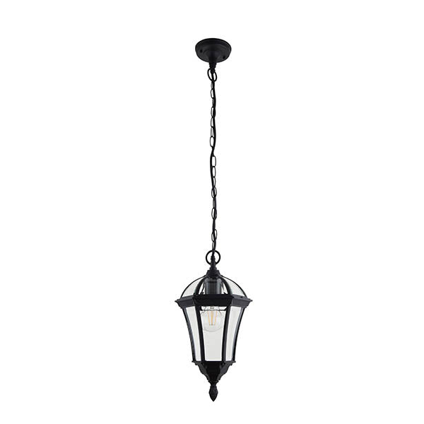 A traditional die cast aluminium hanging lantern with a matt black finish. It is IP44 rated so is suitable for outdoor use, and both dimmable and suitable for use with LED lamps. Others available in this range