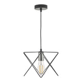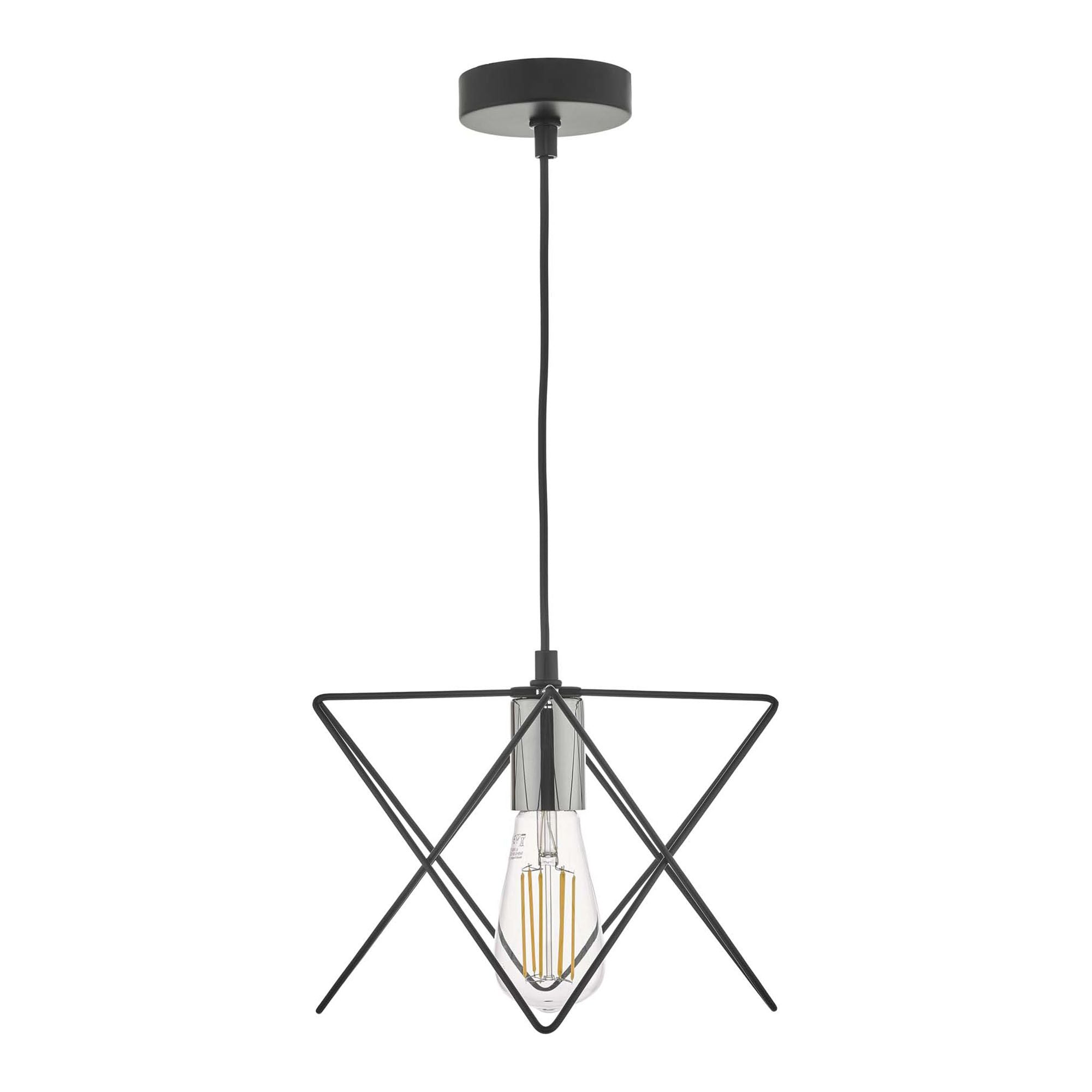 This pendant light is a Scandi-style caged ceiling light with a zig-zag, linear form, finished in matt black. The open framework neatly outlines and shows off the bright polished chrome lampholder, and is perfect for displaying a decorative bulb. This fitting looks great in any living setting.