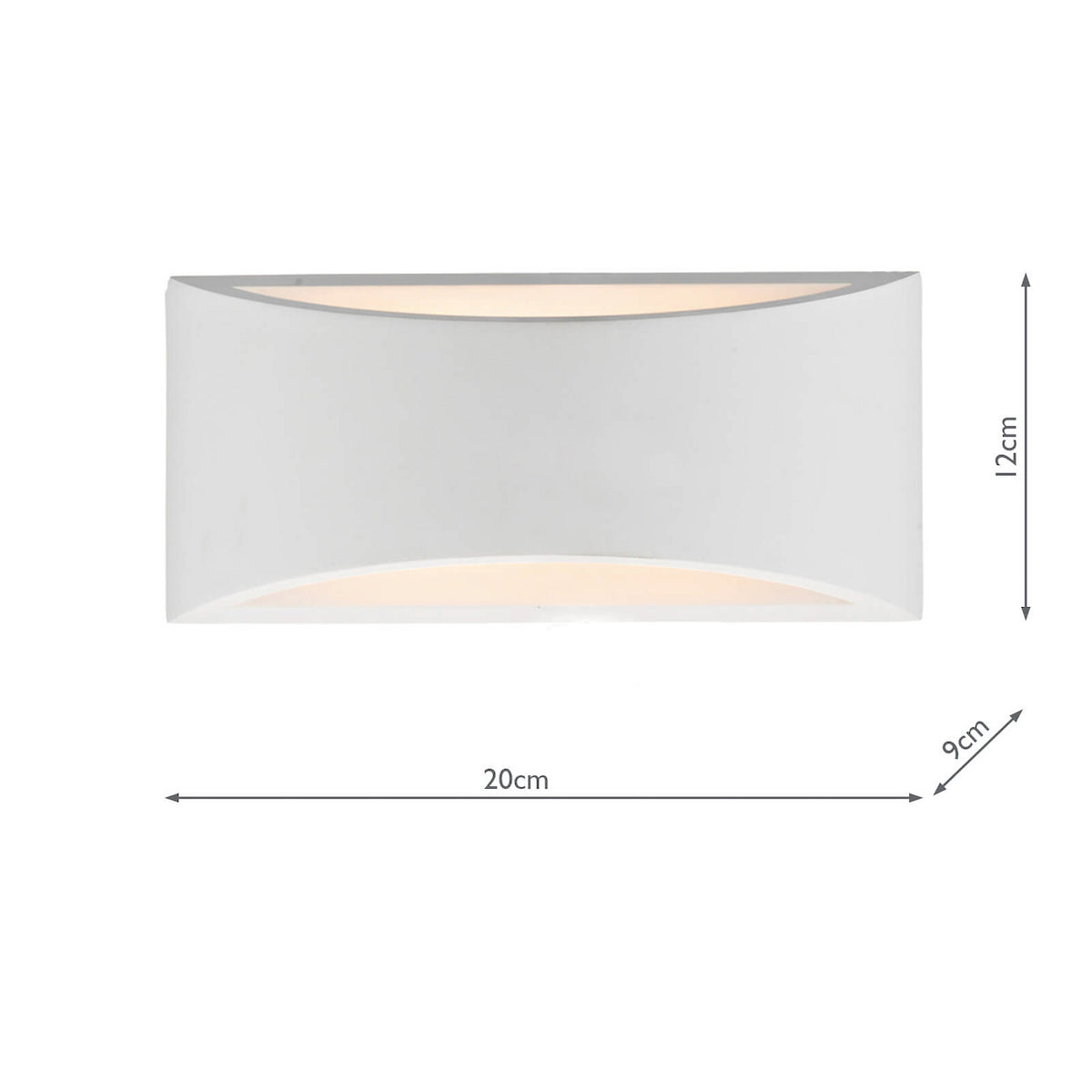 The plaster 2 Light Wall Light casts both up and down illumination and has a white plaster finish suitable for painting.