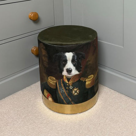 Quirky Stool - Border Collie Dog in Vintage Outfit - Green Velvet Gold Base (1522SH08)