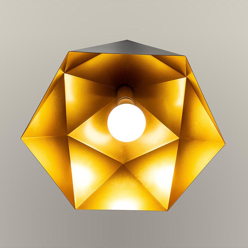 A collection of single pendants, the frames are formed from a larger dome shape and a shallow dish both positioned in different directions to outline the shape of a serving bowl. The slim diffuser where each piece meets has been added to give a soft halo of light in-between both shapes projected from the E27 lamp holder which dispels the main source of light from the larger open shade.