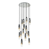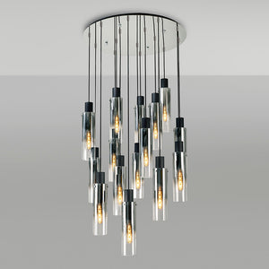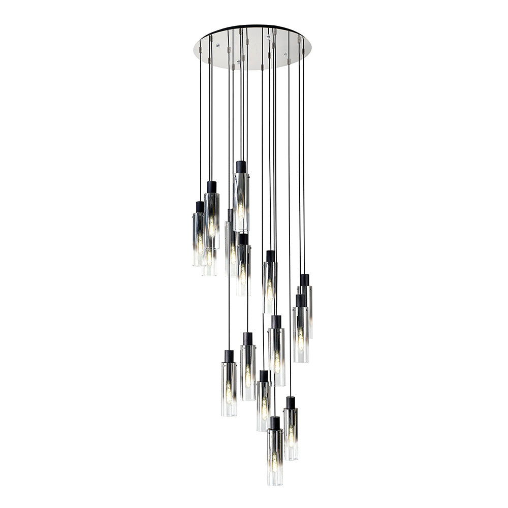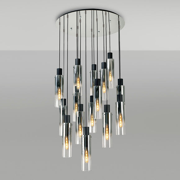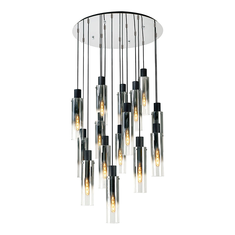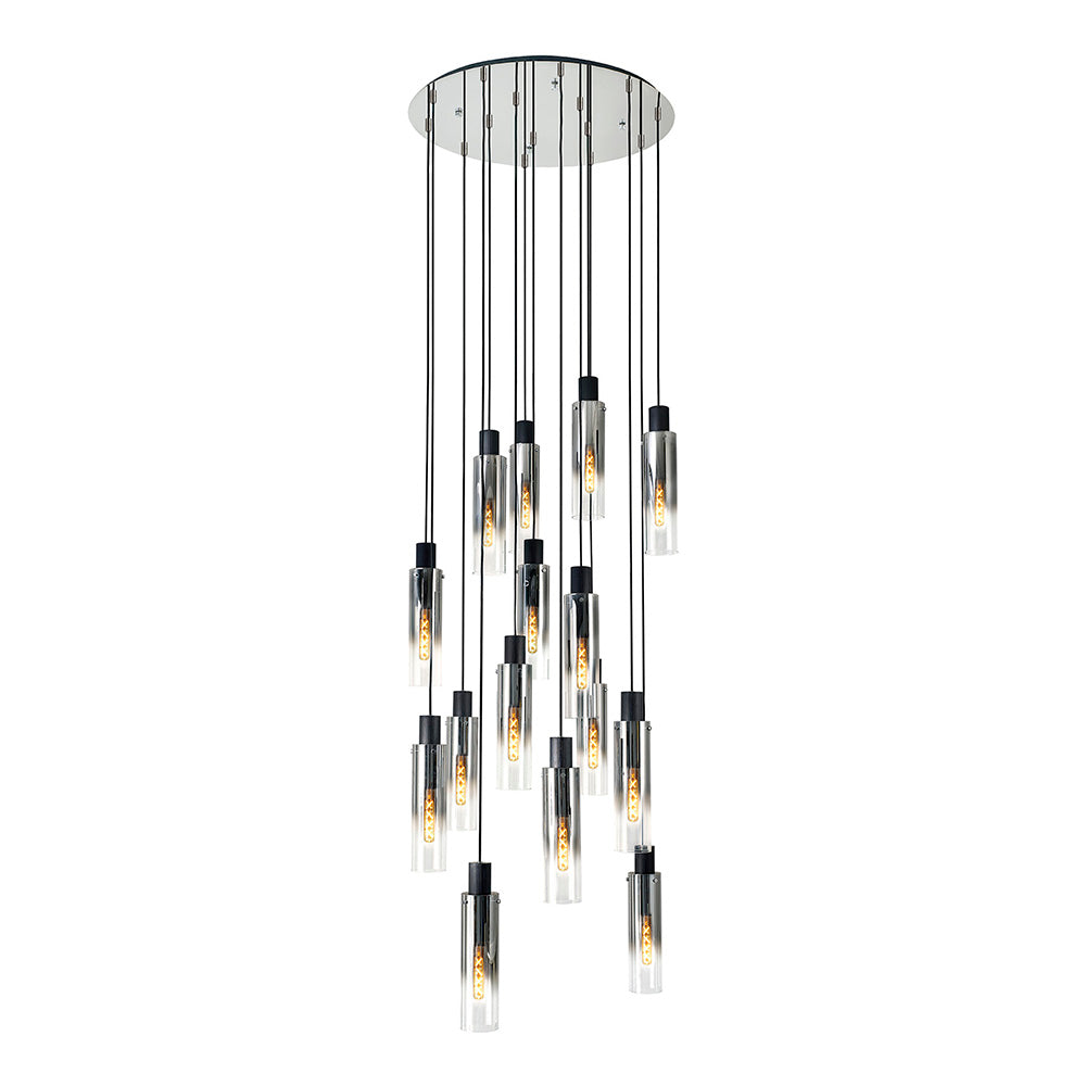 Tall 15 Light Round Pendant, Black / Smoke Fade Glass (1230CHE06A)