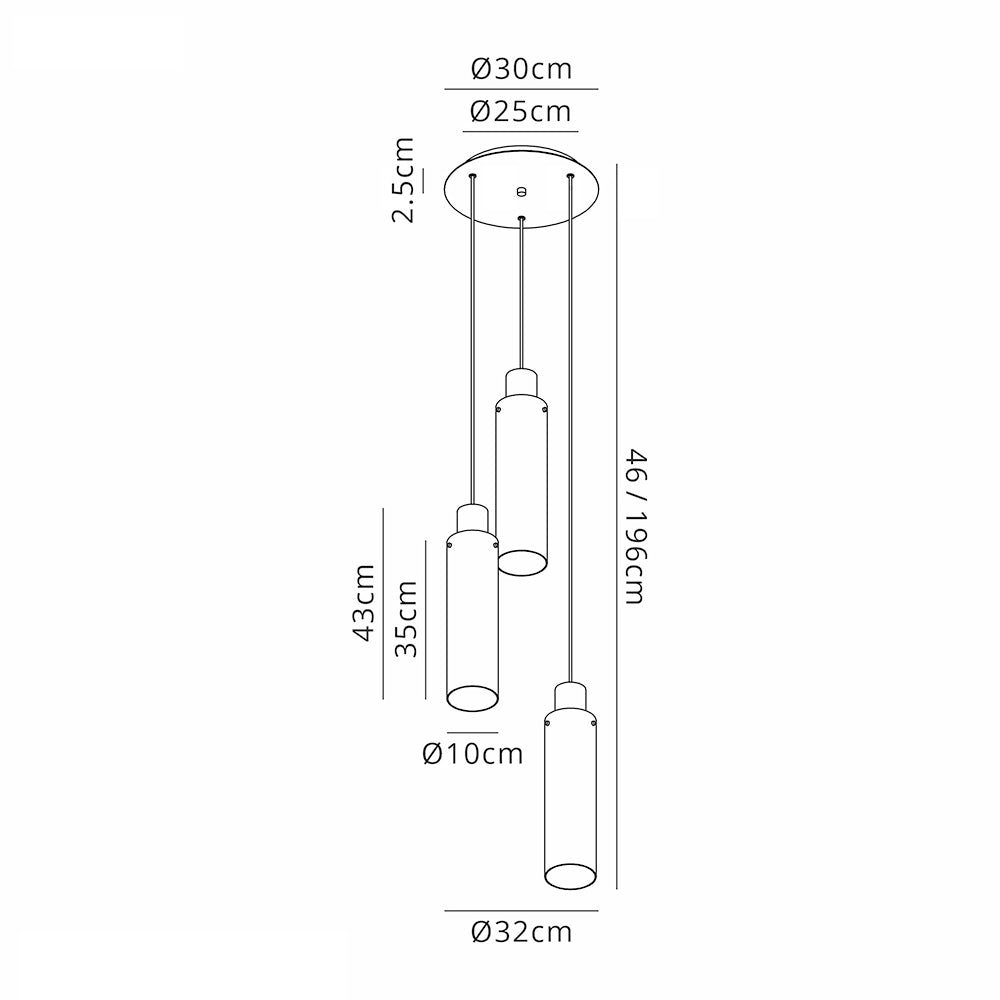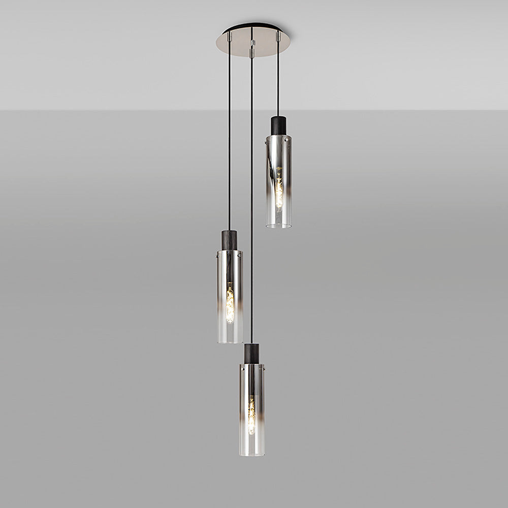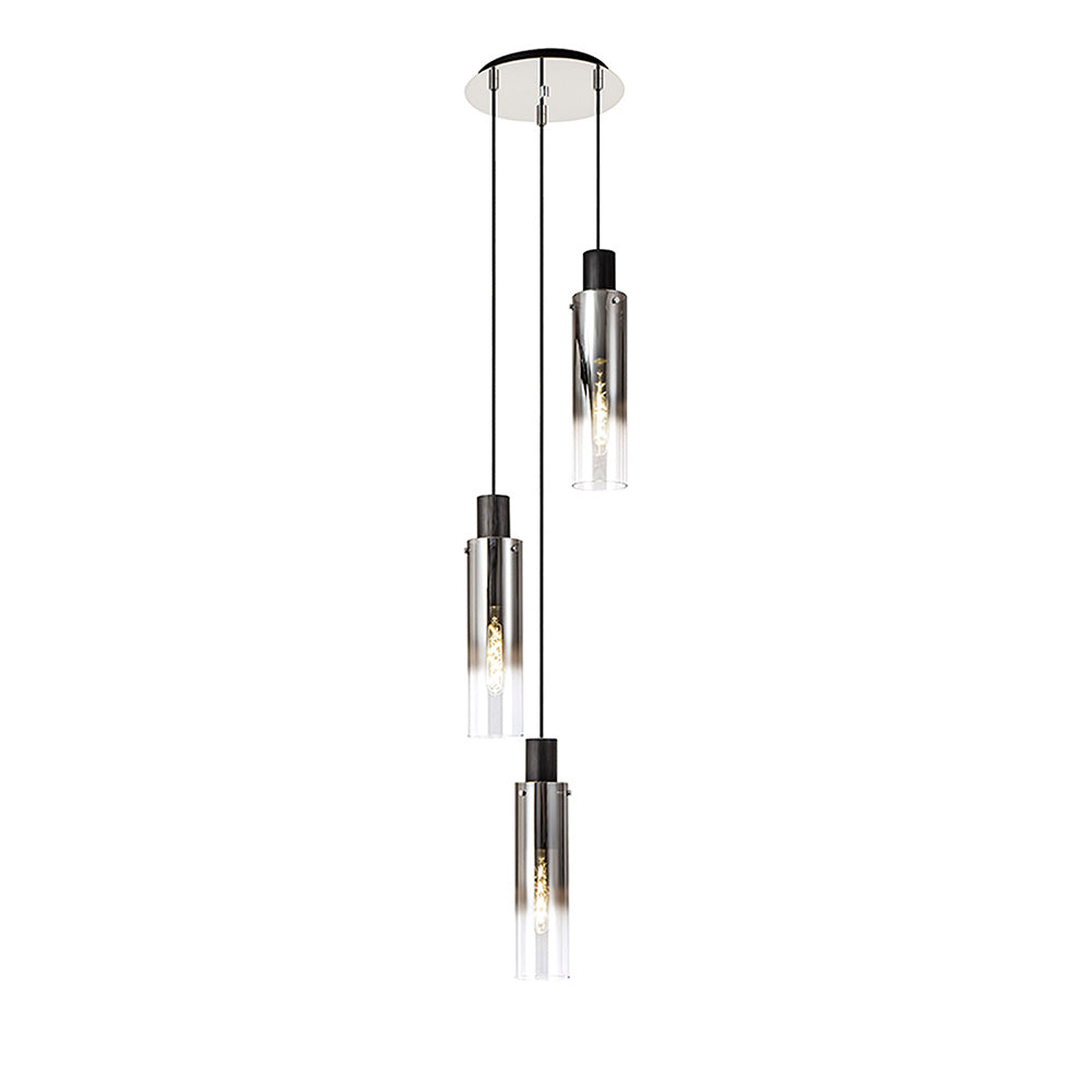 Tall 3 Light Round Pendant, Black / Smoke Fade Glass (1230CHE02A)