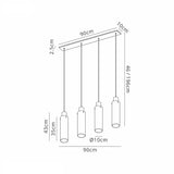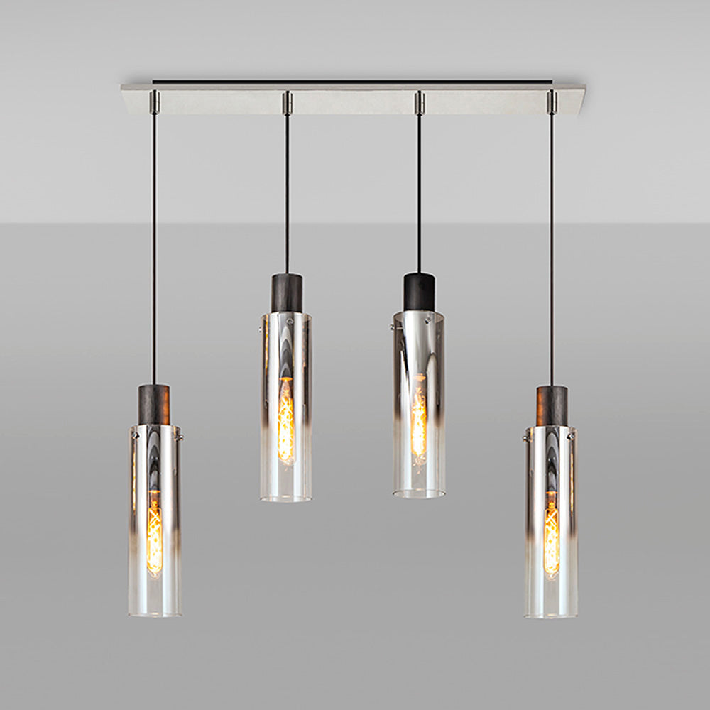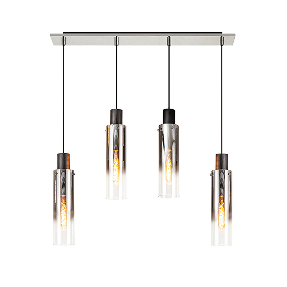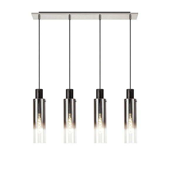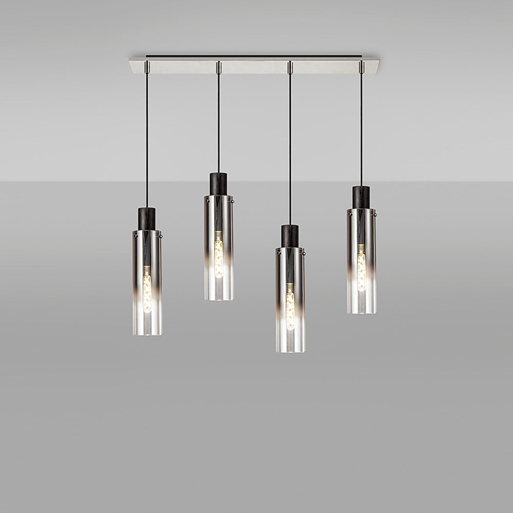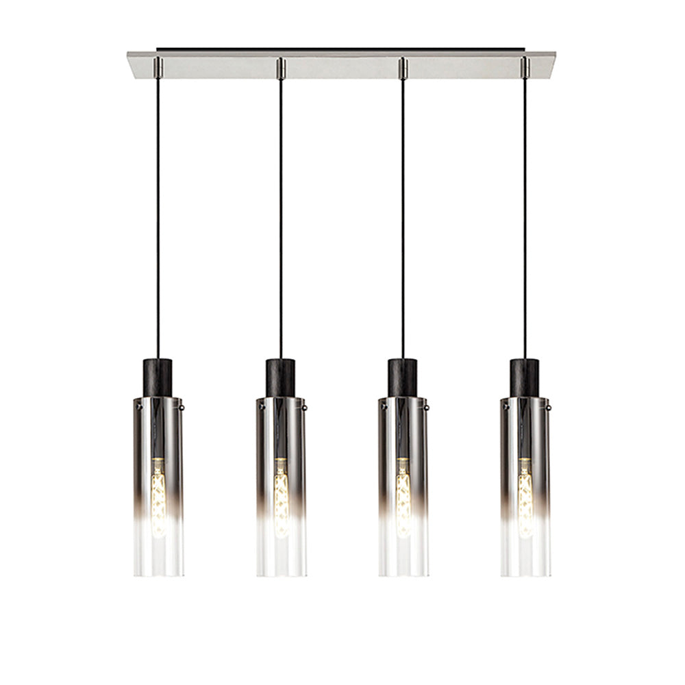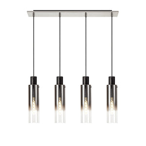 Tall 4 Light Adjustable Linear Pendant, Black / Smoke Fade Glass (1230CHE03B)