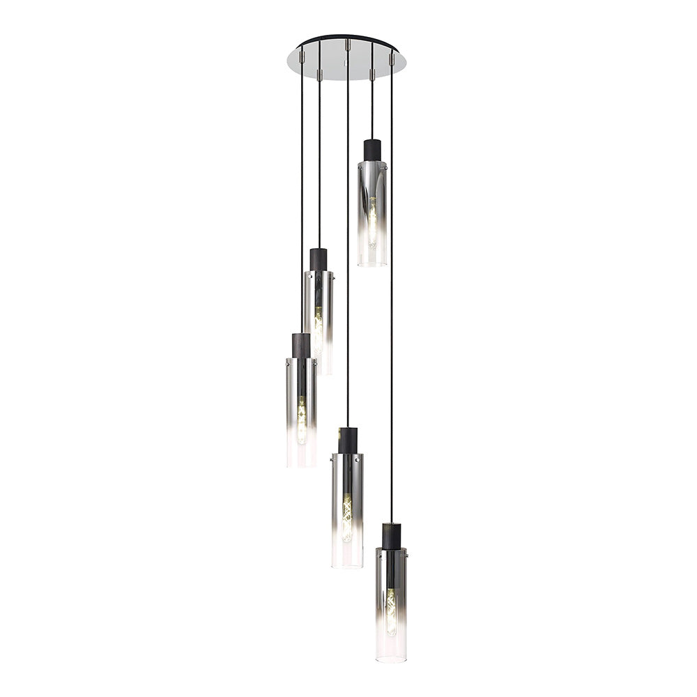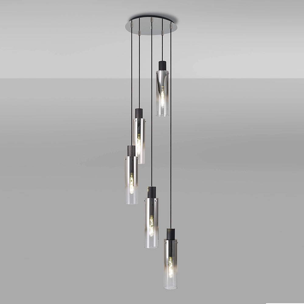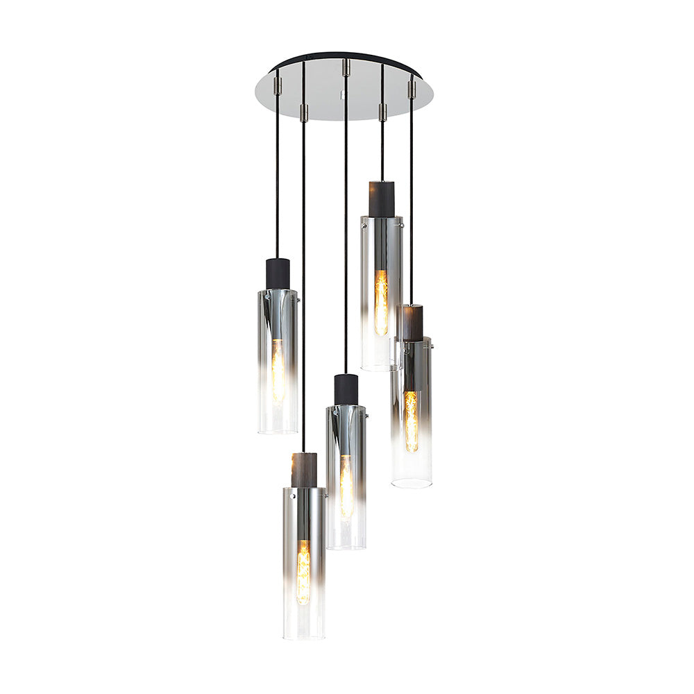 Tall 5 Light Round Pendant, Black / Smoke Fade Glass (1230CHE05B)