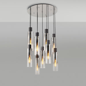 Tall 9 Light Round Pendant, Black / Smoke Fade Glass (1230CHE05A)