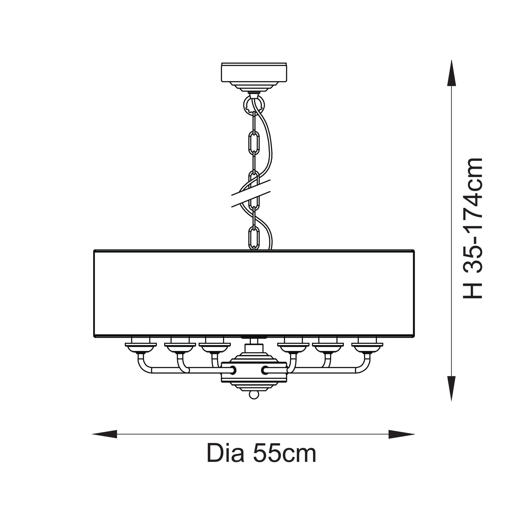 This 6 light pendant is a sophisticated mix of a single large natural linen fabric shade, with matching colour cotton inner and vintage brass plated metalwork. This statement light is the perfect timeless addition to modern and classic homes.