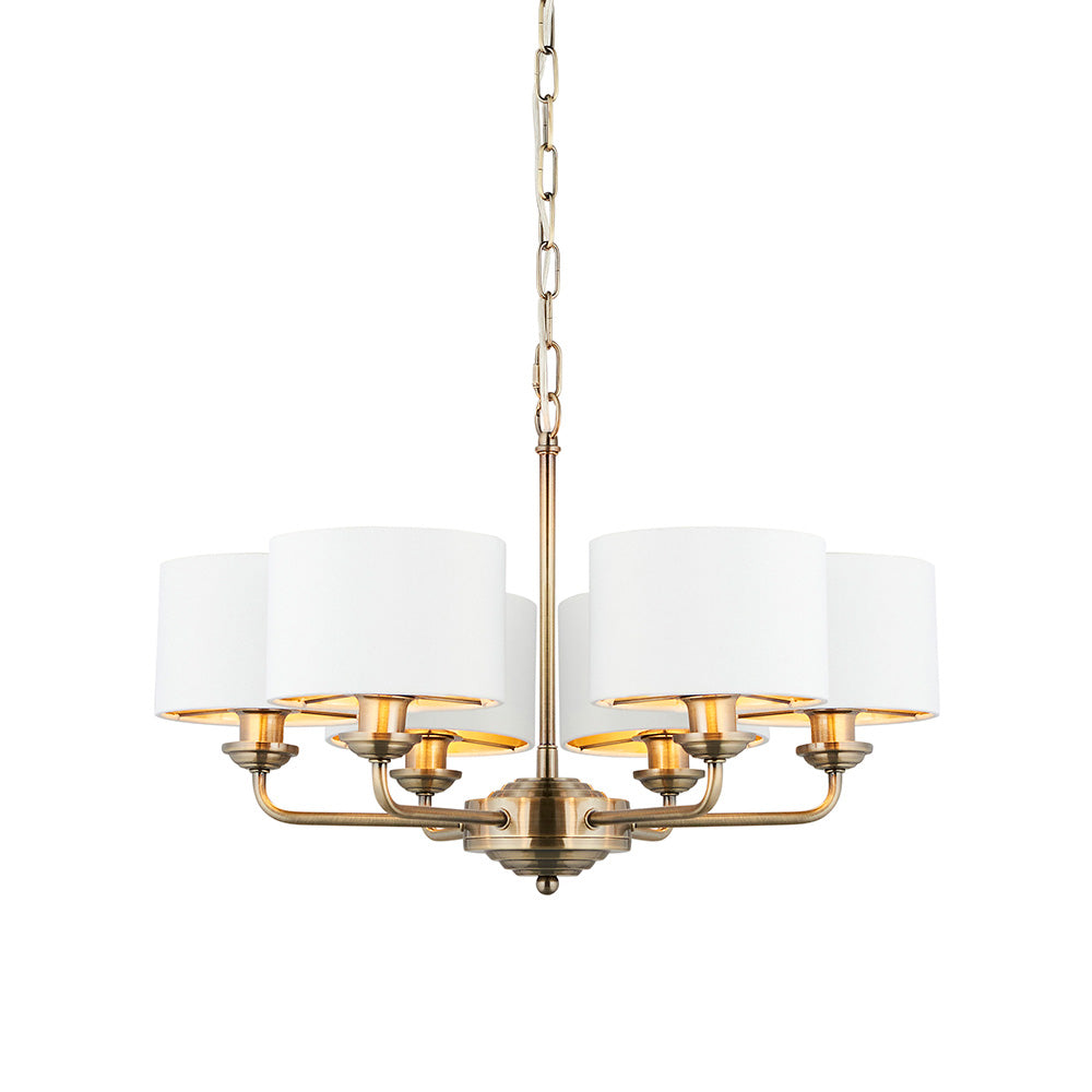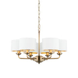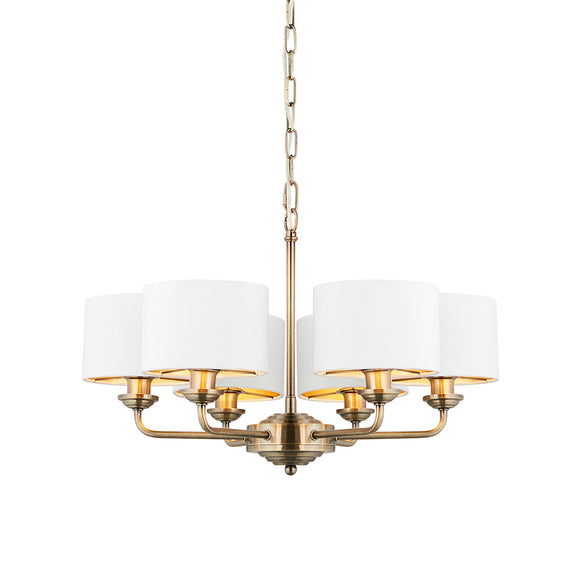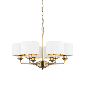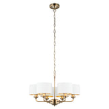 Statement 6 Light Pendant in Antique Brass with Vintage White Shades (0711HIG98936)